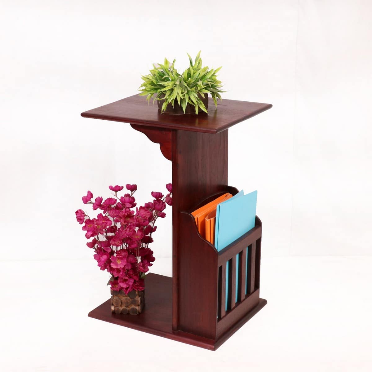 Beautiful Double Utility End Table For Home, What happens when you match the design with utility? You get a high-quality and highly functional product like this one! We are proud to present the dual utility and very compact end table that also houses a small bookshelf on the side. This one is perfect for the side of the couch and for a reading nook that has an old grandfather chair to match. You can layer this piece with a mat and a vase holding some pretty flowers. At the same time, you can place a potted plant below so that some greenery comes to match the gleaming polish of the wood. This table can also be used as a nightstand in the bedroom for convenience!