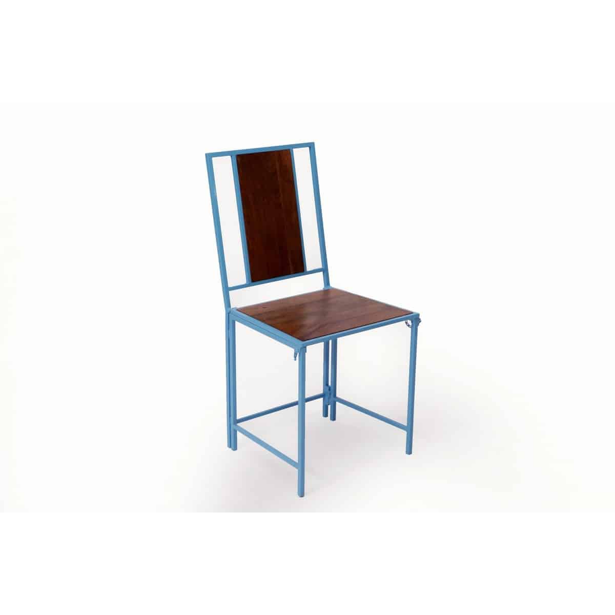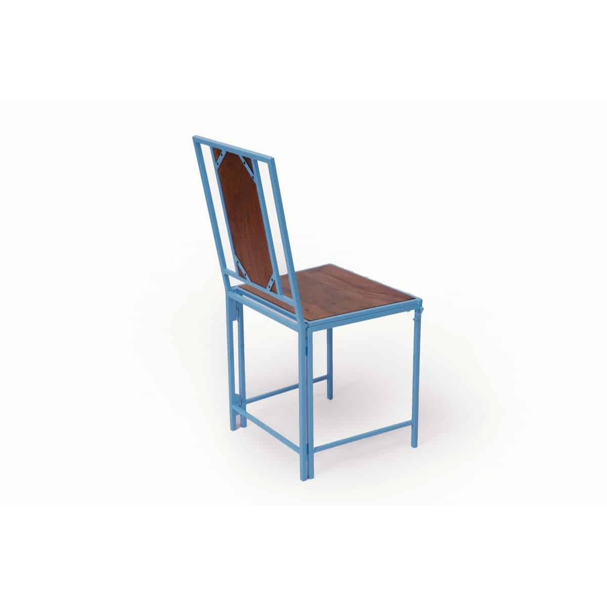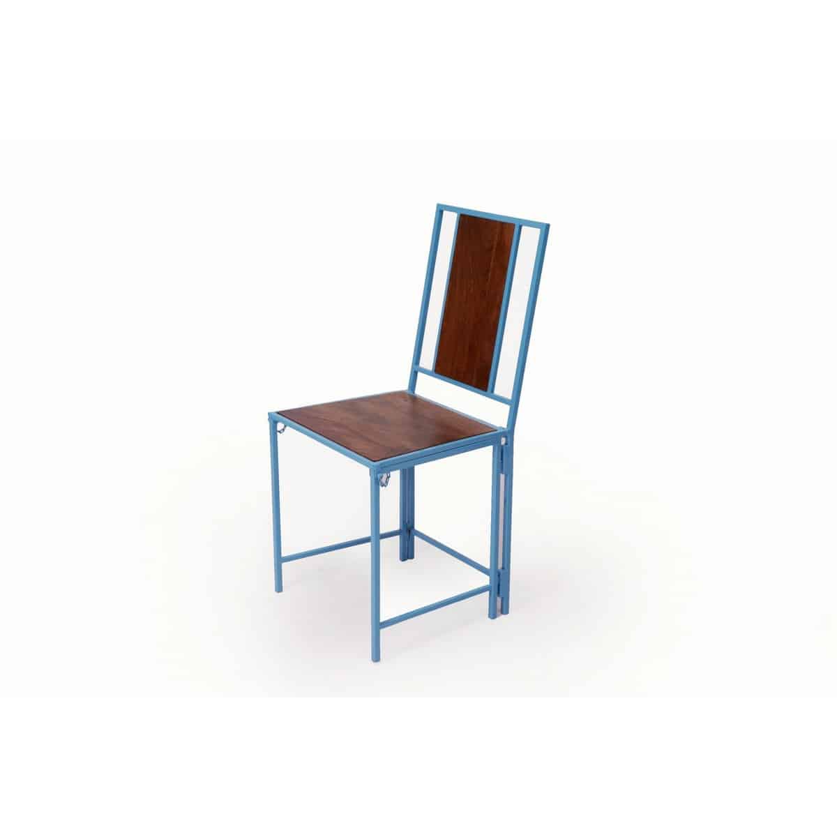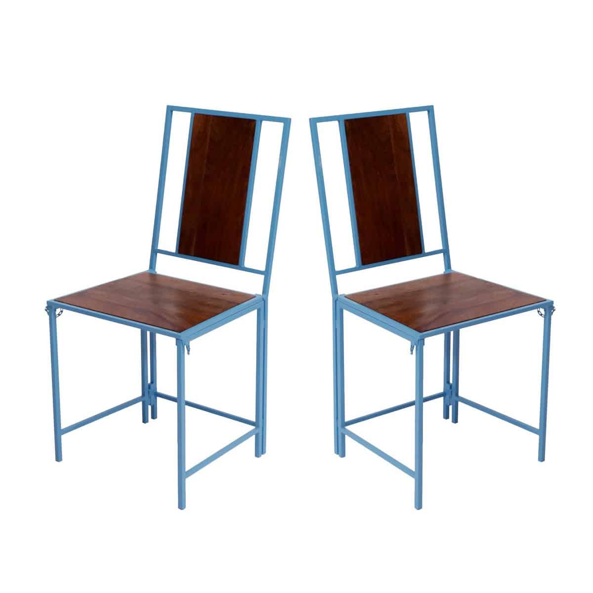 Blue Wooden Metallic Dinning Folding Chair (Set of 2)