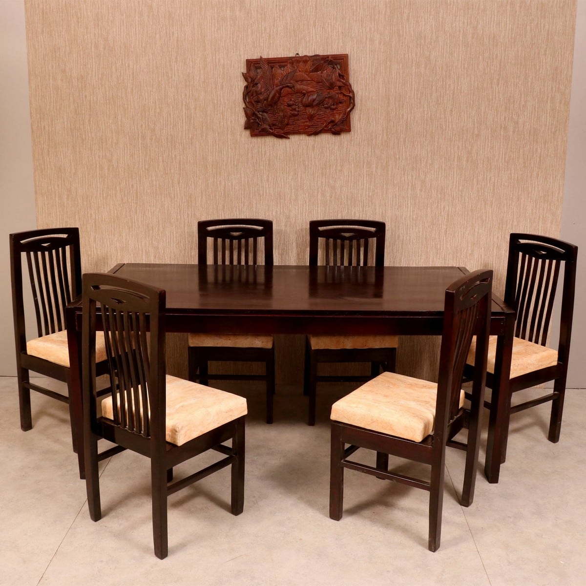 Classic Column Style Dining Set, The dining table and chair set that you see here is one that will add a simple yet dramatic flair to your home. The striped backs of the chairs incline inwards to ensure that your back and spine have complete support – this is also due to the fact that we are all working and studying from home, with the dining table often acting as our headquarters which is why you need to be comfortable at all times!