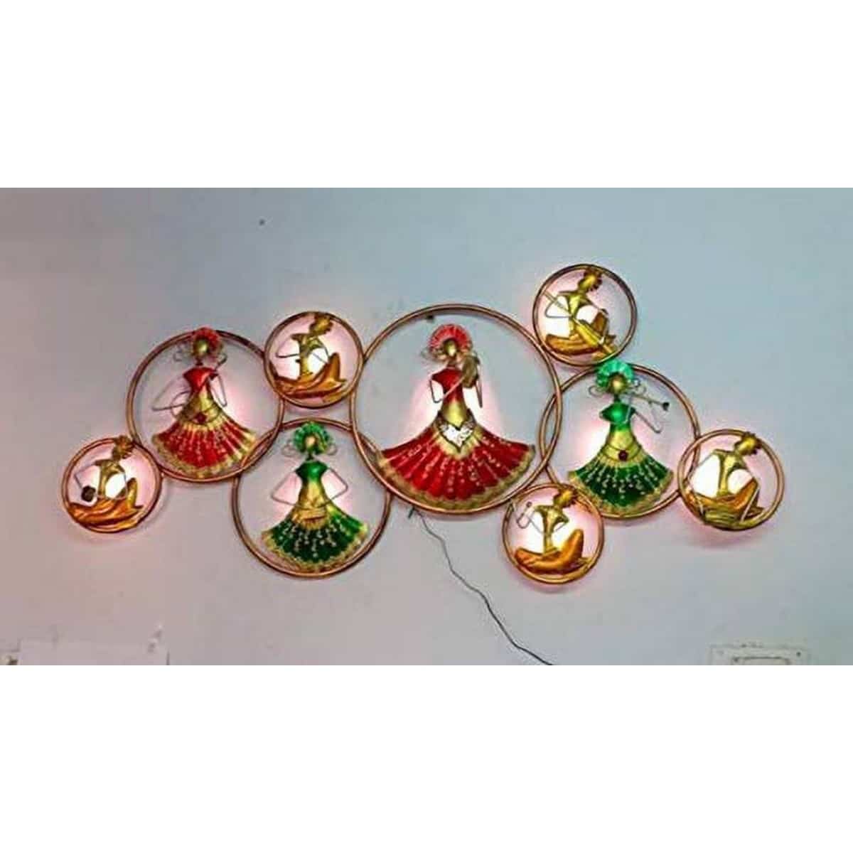 Grab something highly artistic and colourful for your home wall decoration. Just like laying hands on this rings hooks wall decor item with several decorative Lady Statues In Rings inside with illuminated light. As you can see, it is a ring wall decor with a traditional style lady statue inside to capture widespread attention around. All the rings with wall decor statues are linked with each other to provide you big size decorative pattern to capture attention at a glance.