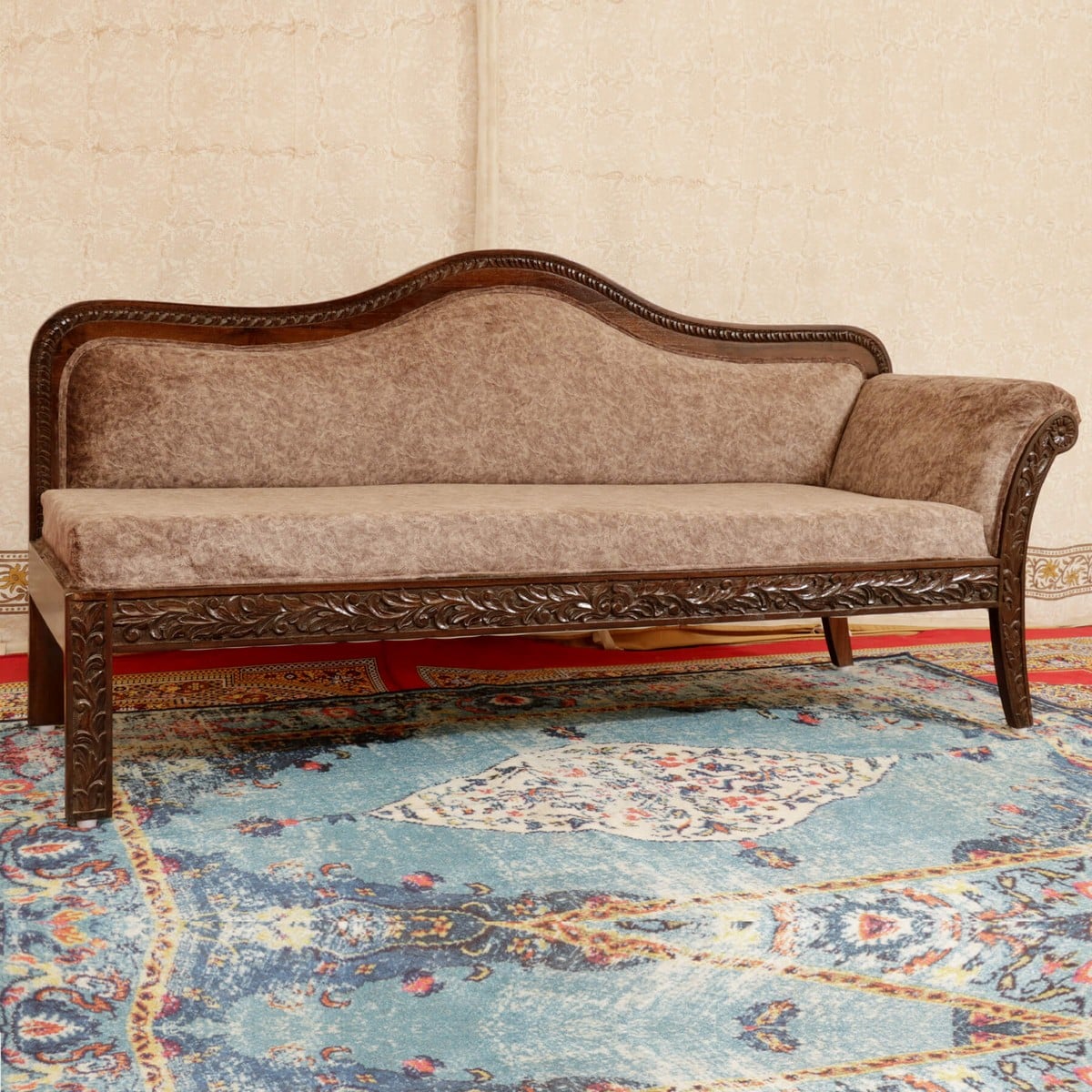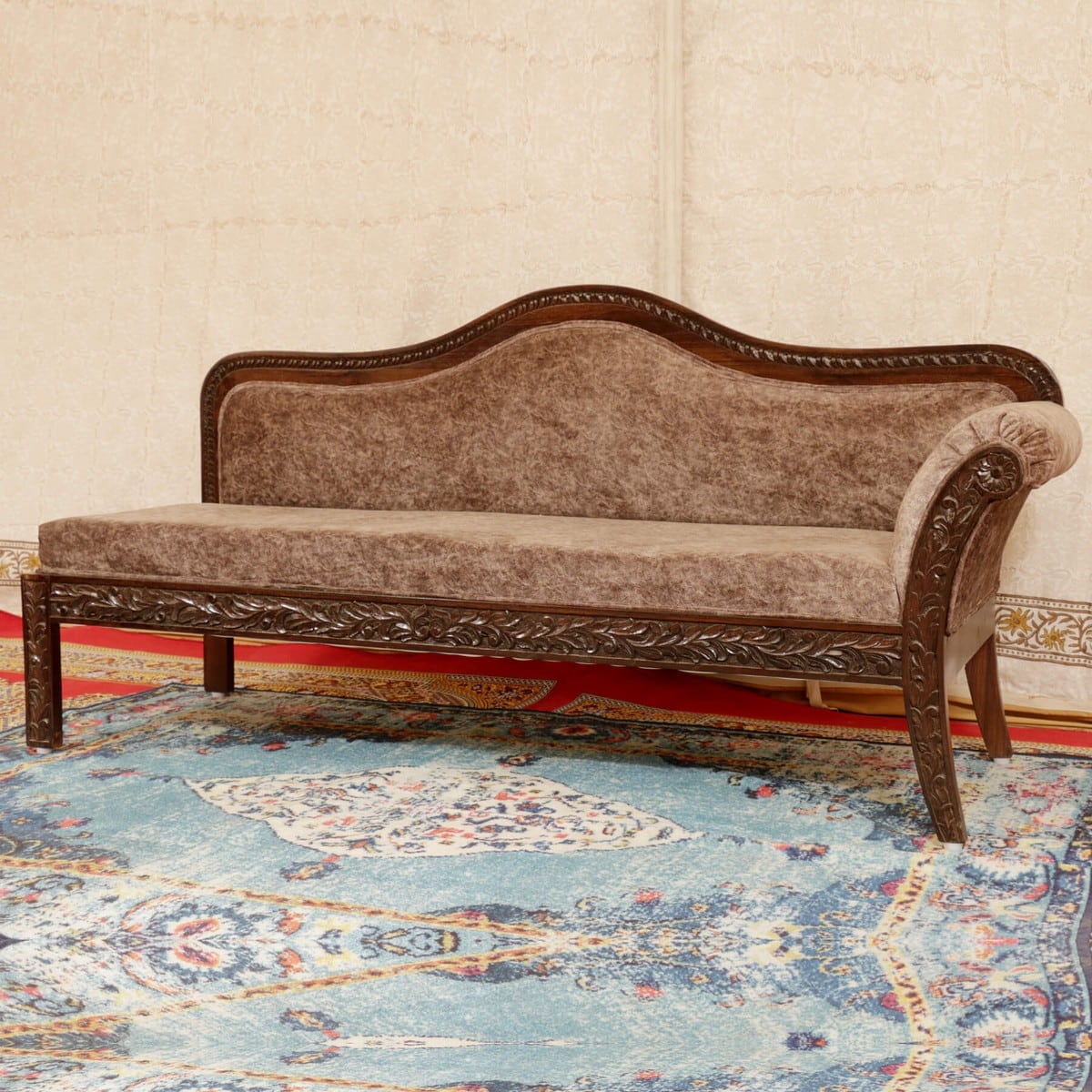 Elegant Three Seater Teak Wood Luxury Sofa, Furniture of ancient times with the feel of luxury and subtlety is what Woodsala incorporates into the modern modular world. The unmatched look, excellent quality, and longtime durability are some of the factors Woodsala abides by. This majestic sofa enhances the view of your home with its mere presence. It can easily accommodate three people and is made of high-quality teak wood. Used almost in Wedding Functions, this Sofa has its own charm of alluring the onlookers. Beautify your space with a regal look by buying this Elegant Sofa or call for personalized requirements. We might surprise you.