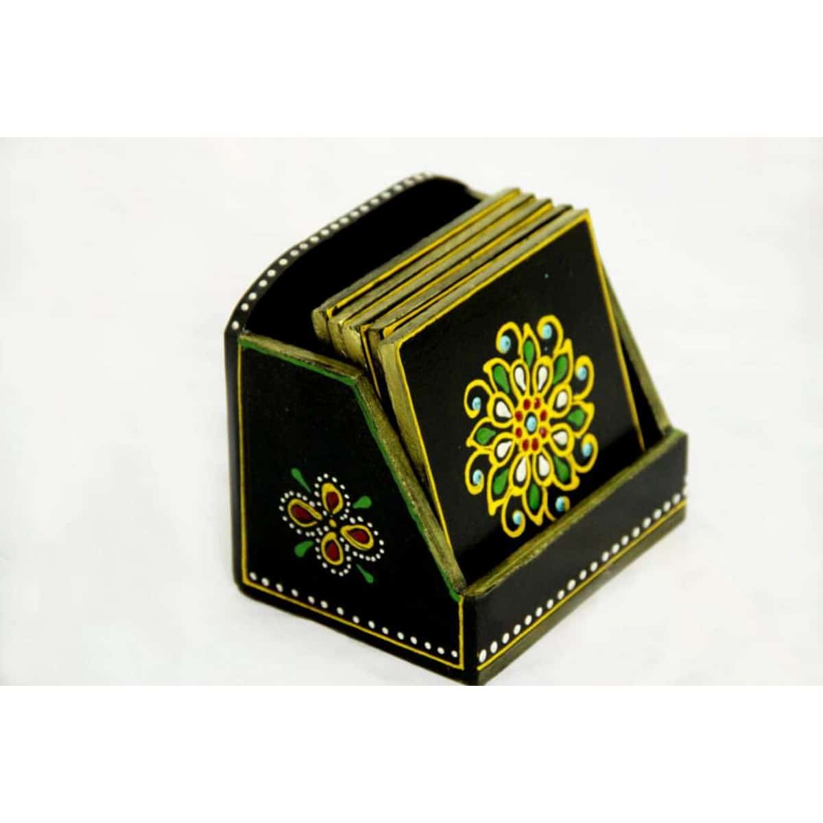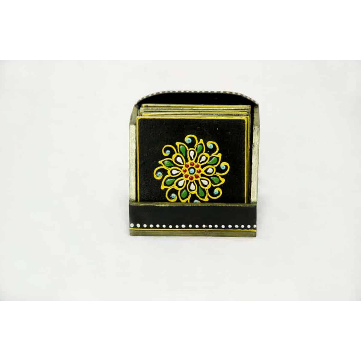 Be the first to review “Hand-Painted Wooden Coasters With Holder (Set Of 4)”