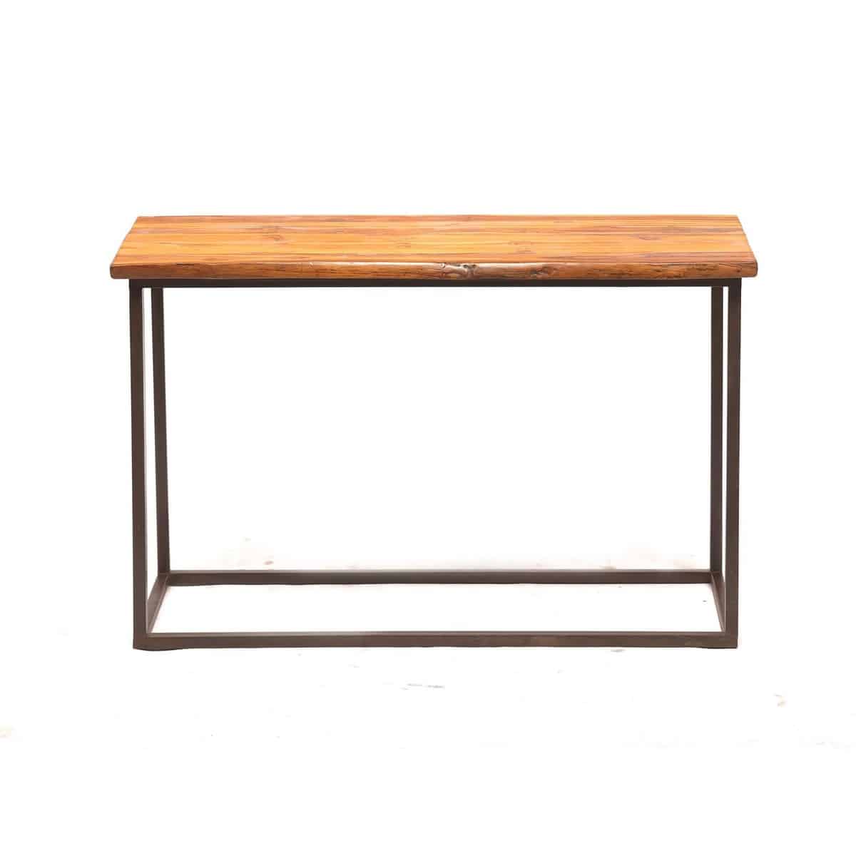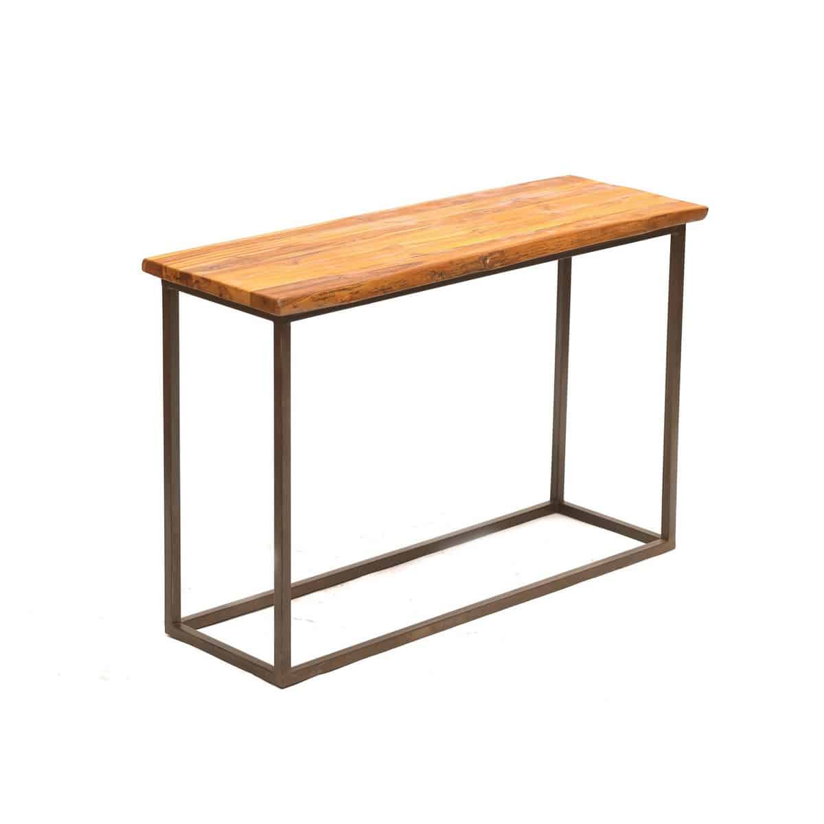 Heritage Finish Metallic Stand Solid Wood Top Console Table