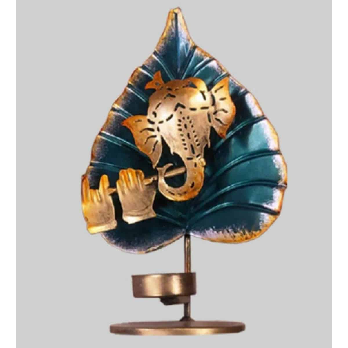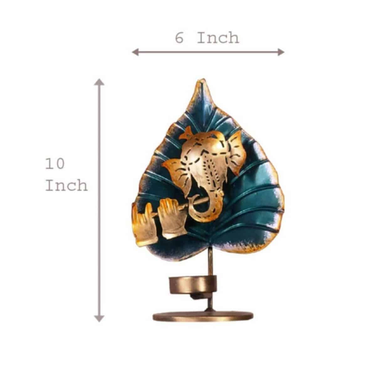- Lord Ganesh Leaf T-Light Pack Content: 1 Metal Wall Art