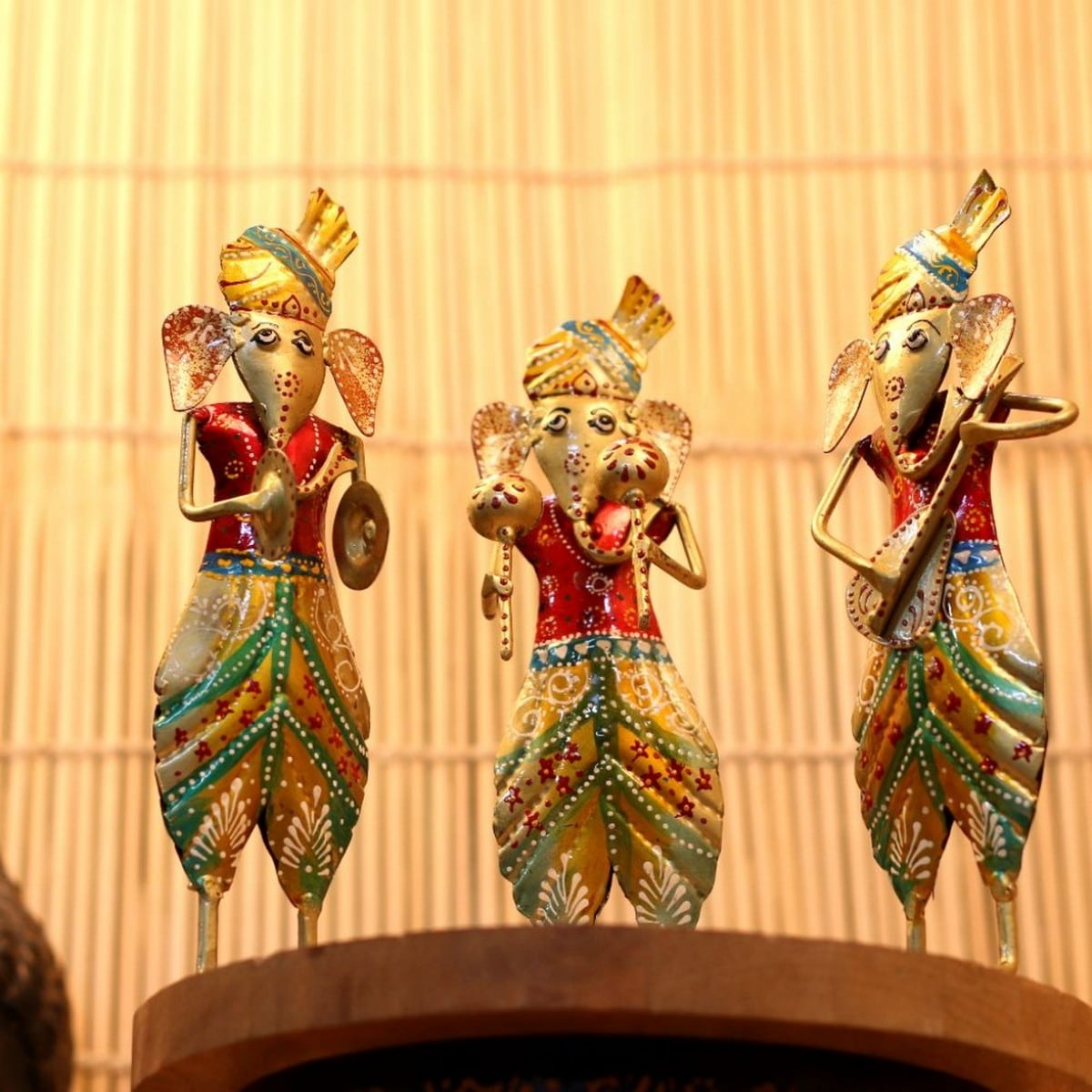 • Golden and copper iron painted amazing mini Ganesha set of 3.