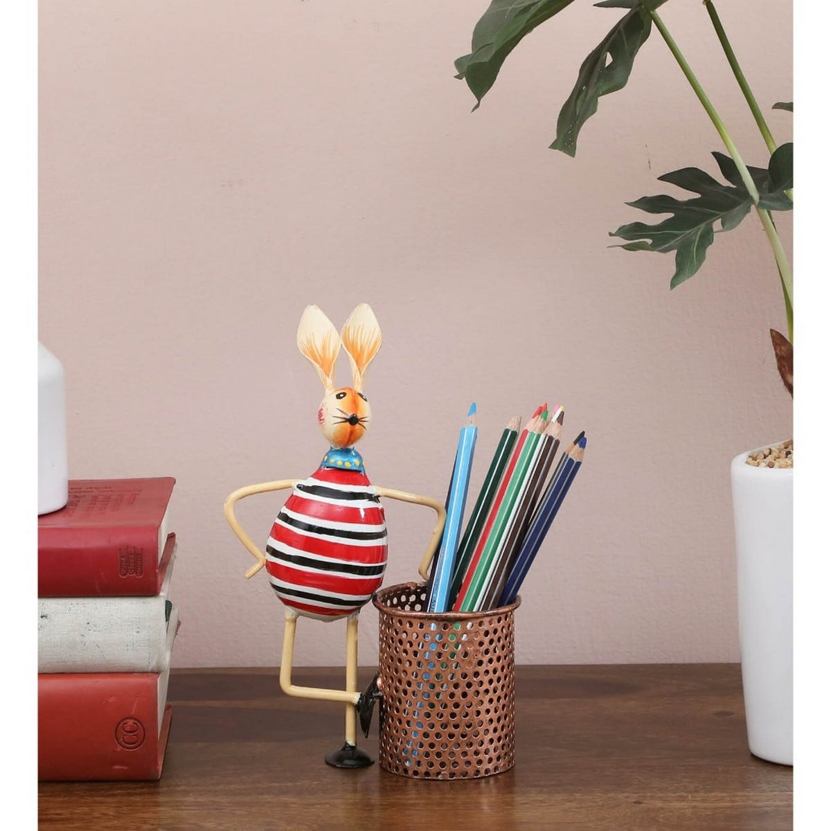 Tags: Hand Painted Pen Stand, Metal Pen Holder, Pen Holder Decor For Desk, Pen Holder Design, Pen Stand Design, Pen Stand Showpiece Art, Rabbit Pen Stand, Showpiece For Study Table