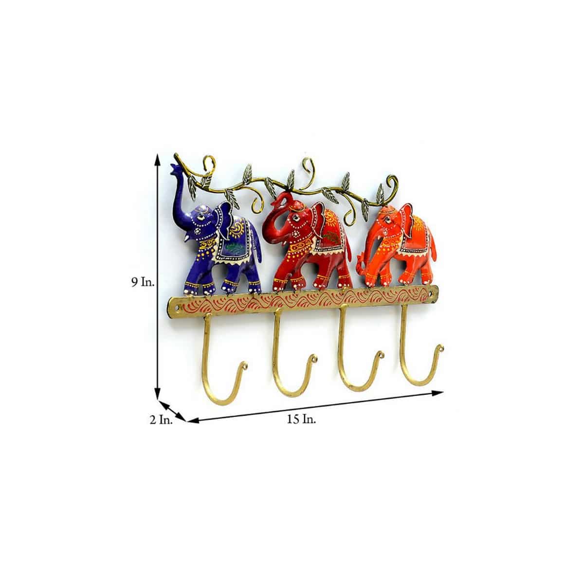 Multicolour Iron Elephant Key Holder for Wall