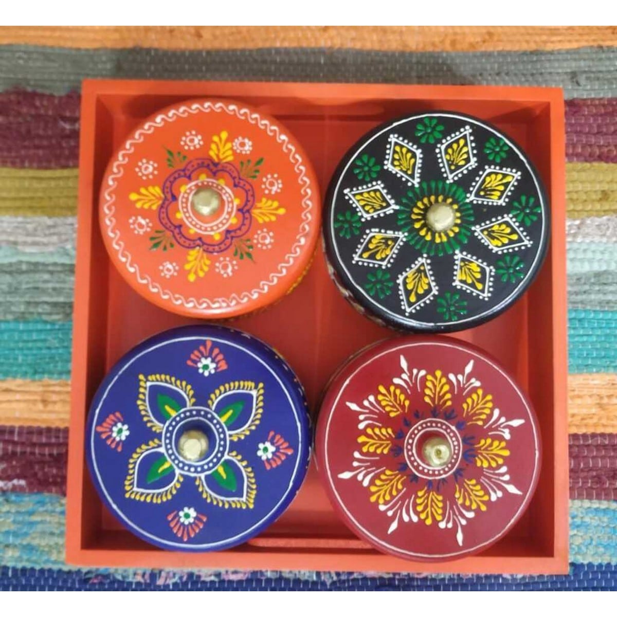 Hand-Painted Wooden Coasters With Holder (Set Of 4)