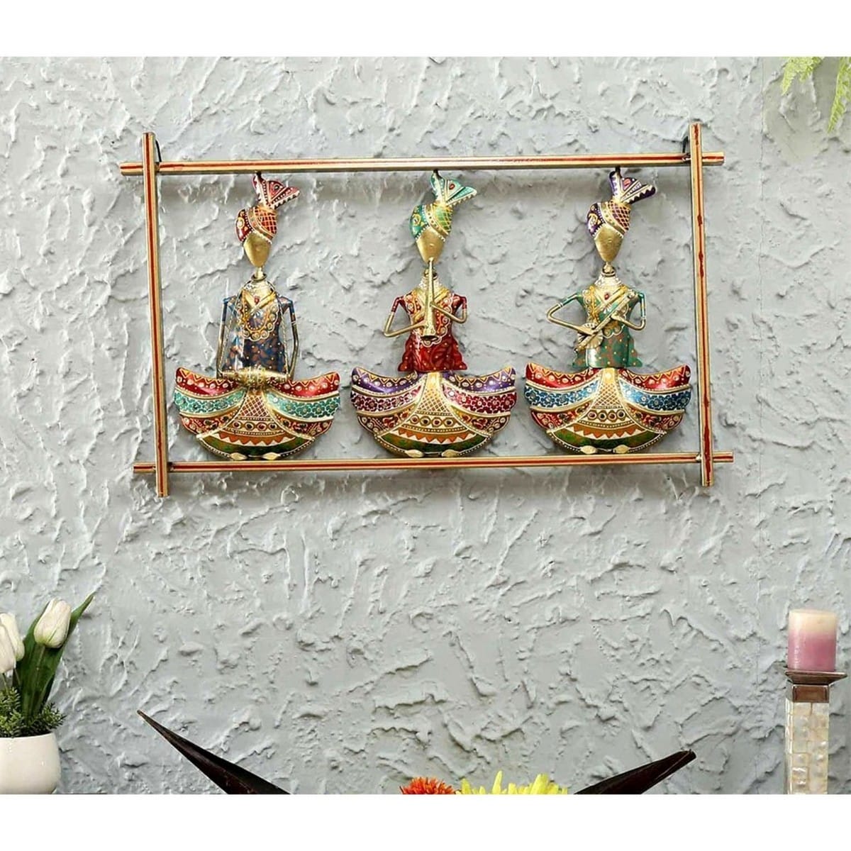 Multicolour Iron Metal Painted Musician (Set Of 3 )