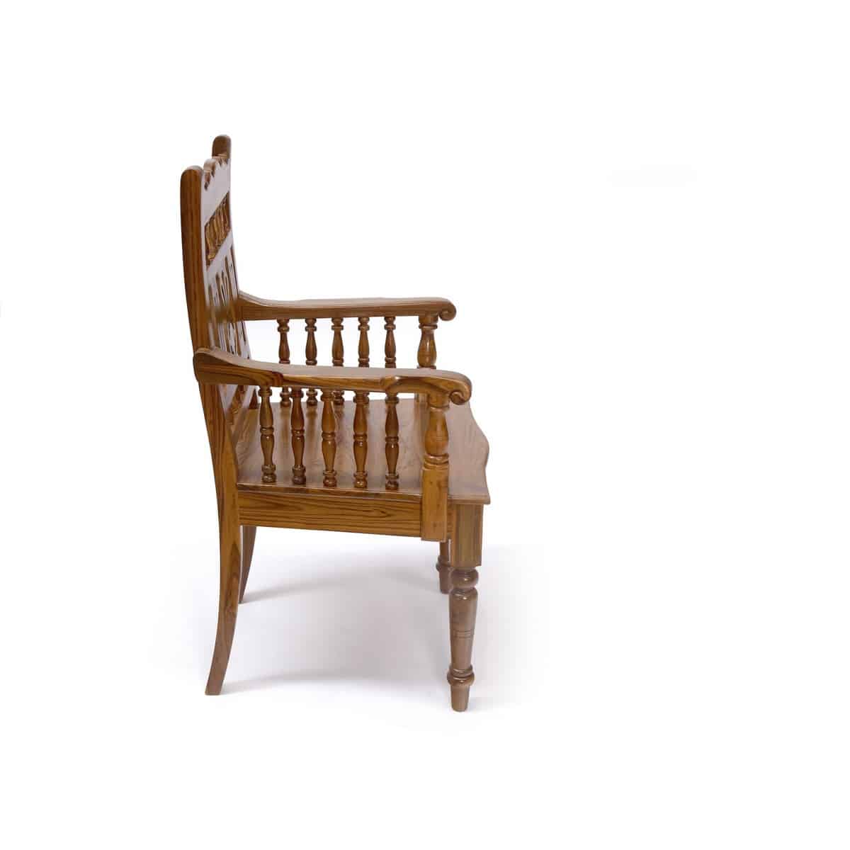 Natural Tone Intricate Royal Carved Chair South Indian if this is not royal – we aren’t sure what is! The intricate carving on this brightly polished teak wood chair will take your breath away as you run your fingers over the nooks and crevices of this piece. You can bring this chair home and place two of them next to each other and a painting in between to do up the foyer or living room.