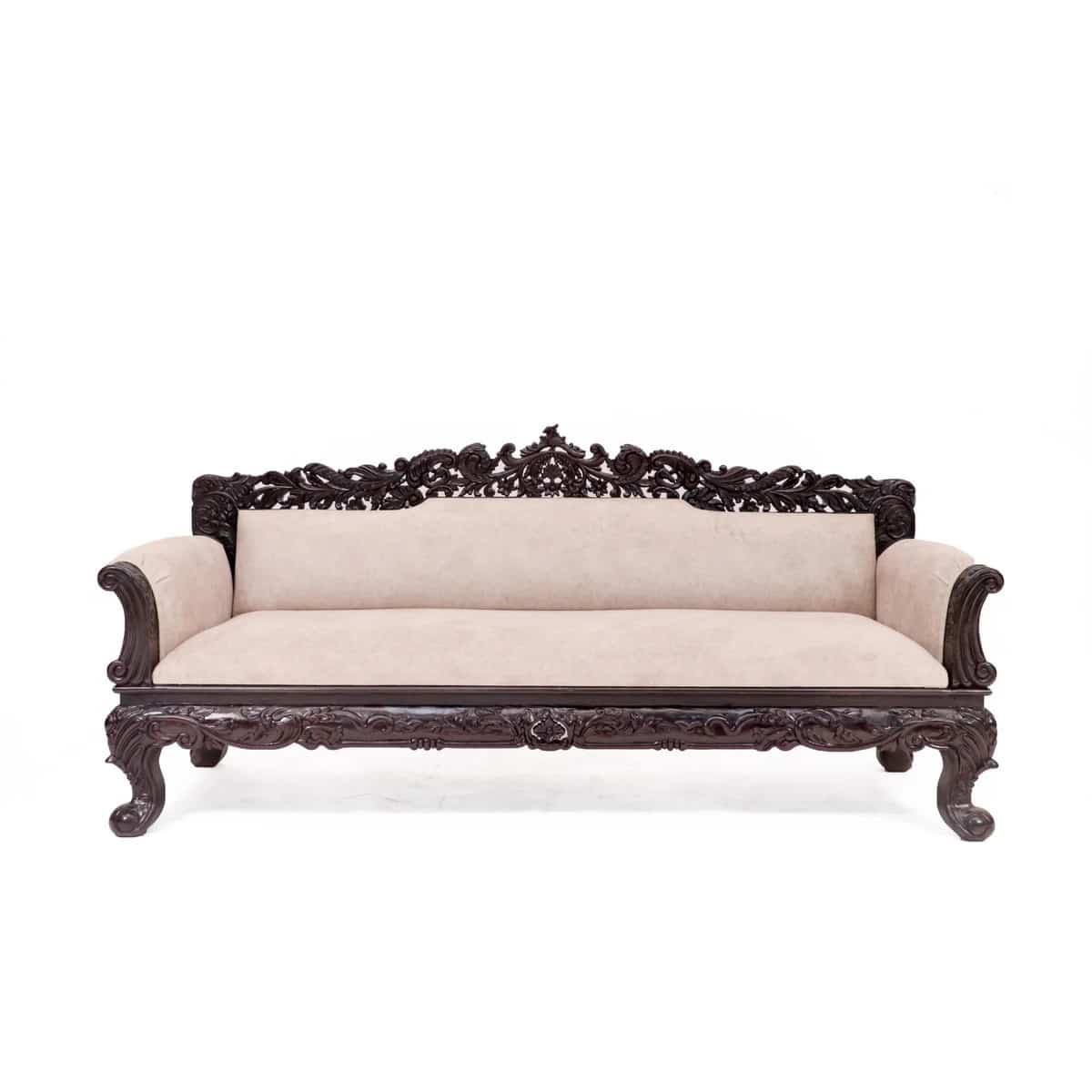 Royal Carved Teak wood Three Seater Sofa, The cushions are comfortable and would be the ideal resting place when you are done with a day of backbreaking work – mental or physical. You could sit on this chair with your favorite snacks and beverages, and watch your favorite series or movies.