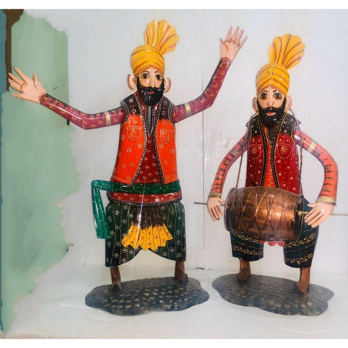 2 Dancing Sardar Statues, Grab something highly artistic and colourful for your home wall decoration. Just like laying hands on this dancing Sardar statue in the set of 2 figures as tabletop decorative items. As you can see, these are two colourful dancing looking statues for decoration in the shape of happening sardars that definitely bring your attention at a first glance.