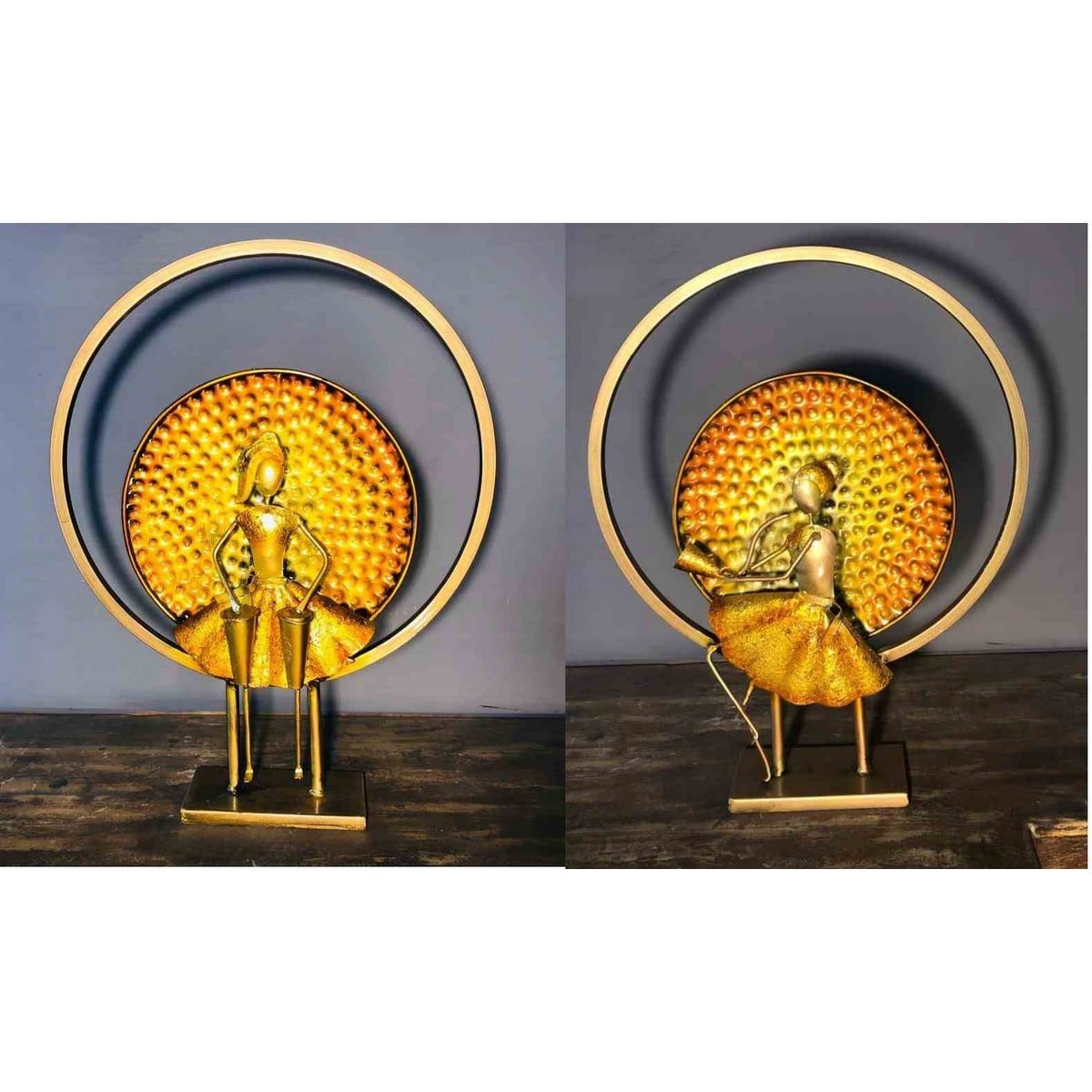 Available in a pair of 2 statues, these are musical lady-looking tabletop decor pieces that are bright golden and orange in shade to bring reflective illumination around.