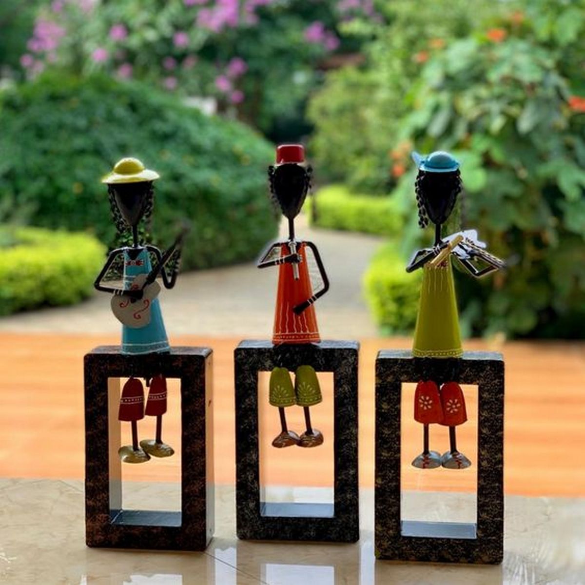 Let there be something decorative and artistic in style grabbed for the table top decoration. In that sense, simply lay hands on this wooden made Musician Men Statue figures in a set of 3 macha man for table top decor. It can decorate the surroundings to find an added attraction around. As, you can witness it is a small set of 3 macha man statue for table top decoration that are designed in a wooden pattern with each statue holding a different musical instrument.