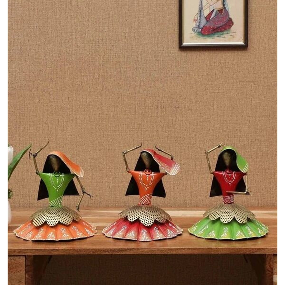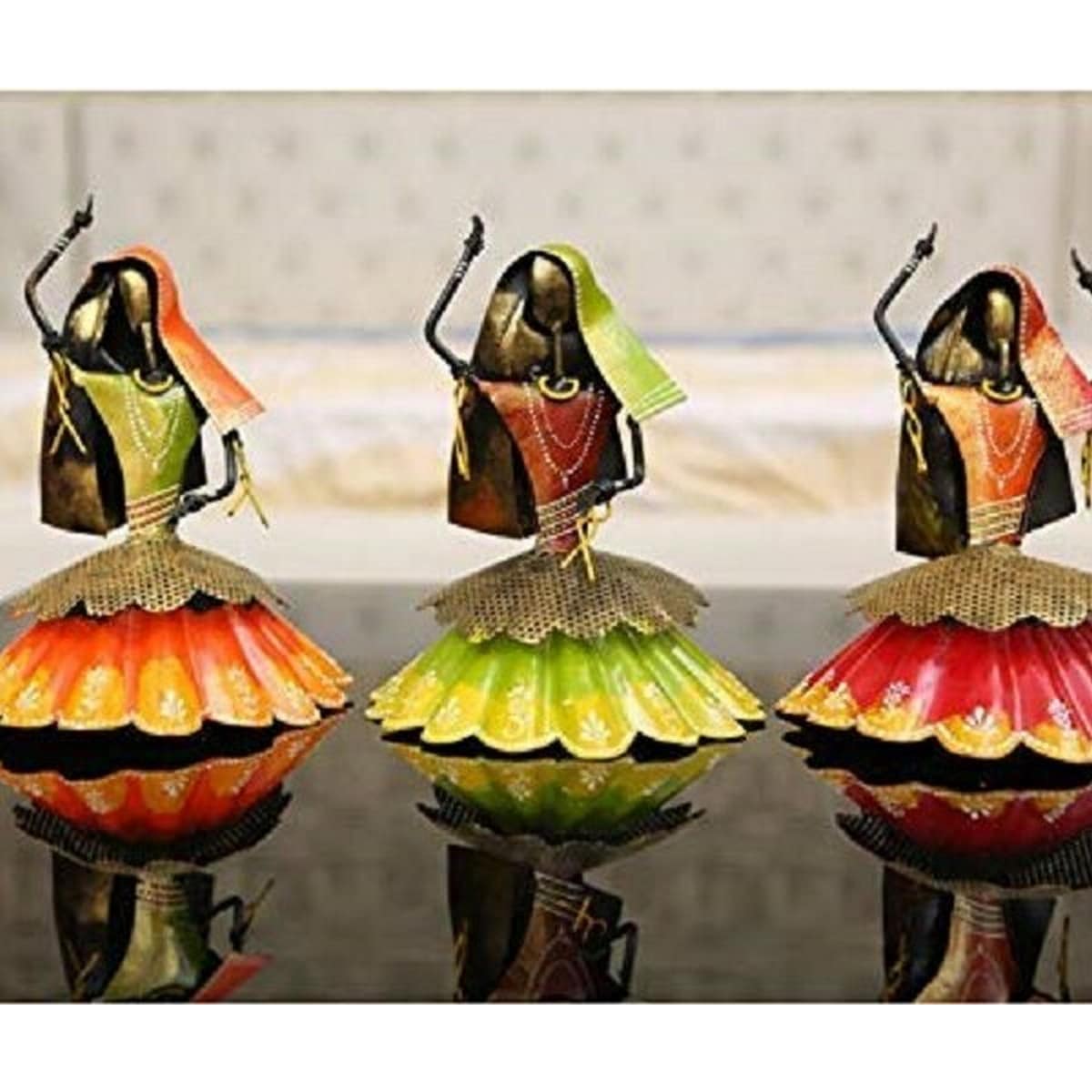 As you can see, these are dancing statues in metallic patterns in the form of 3 artistic Iron ladies that are sure to bring a level of amazement around. Just grab this traditional lady dancing decoration item at the sale with us to decorate any tabletop of your house that could be like the dinner table, centre table, study table, or even the work table. Just grab one of the best table decor items online with us to bring a level of fascination around and showcase your true love for artistic statues like this.