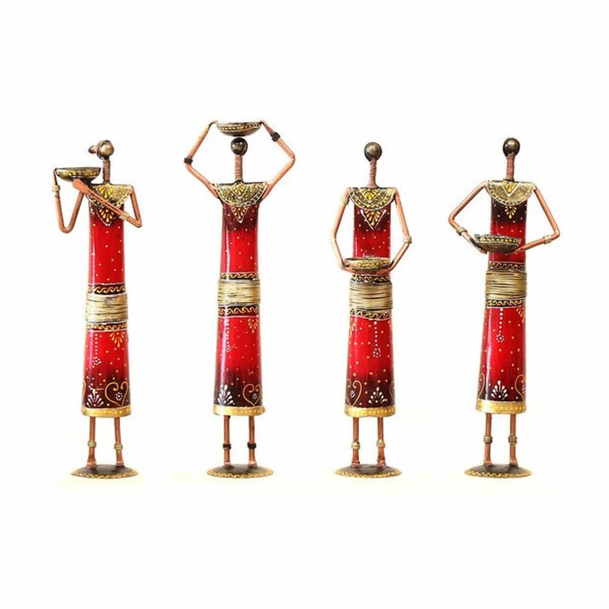 Are you looking for something highly decorative for the tabletop? If yes, then you have come to the right place to buy something amazing online. We are here to offer you doll Red Tagari Doll Table design tabletop decorative items in the form of 4 artistic Iron lady statues that sure to bring a level of amazement around.