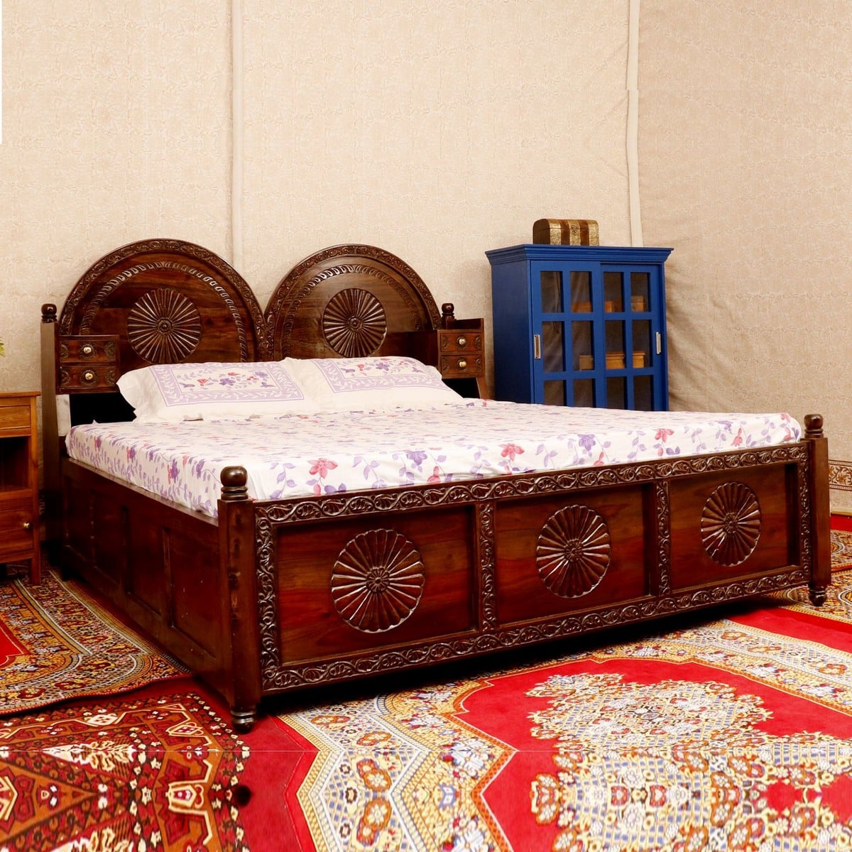 Wood Natural Tone Classical Bed - Natural Solid Wood