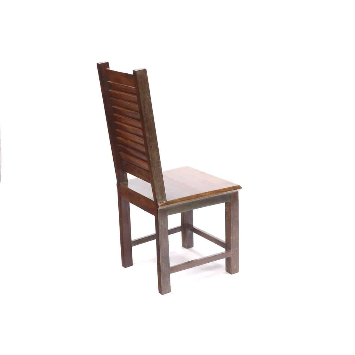 Shutter Back Old Colour Wood Chair (Set of 2), Country style came calling and we simply could not resist the lure of all things rustic! These chairs have that wonderfully sandpapers effect on the robust wood, which gives them a rustic edge like none other. It instantly transports us to a farm with meadows and valleys with apple orchards; where crates of apples burst open with the fruit tumbling down the green hillside and children running merrily behind! Try these chairs with a natural polished wooden table and watch as the fun begins with each and every meal that you enjoy in the vicinity. These chairs can easily be placed next to vibrant artwork as the subtle colors give the right backdrop for other colors to emerge.