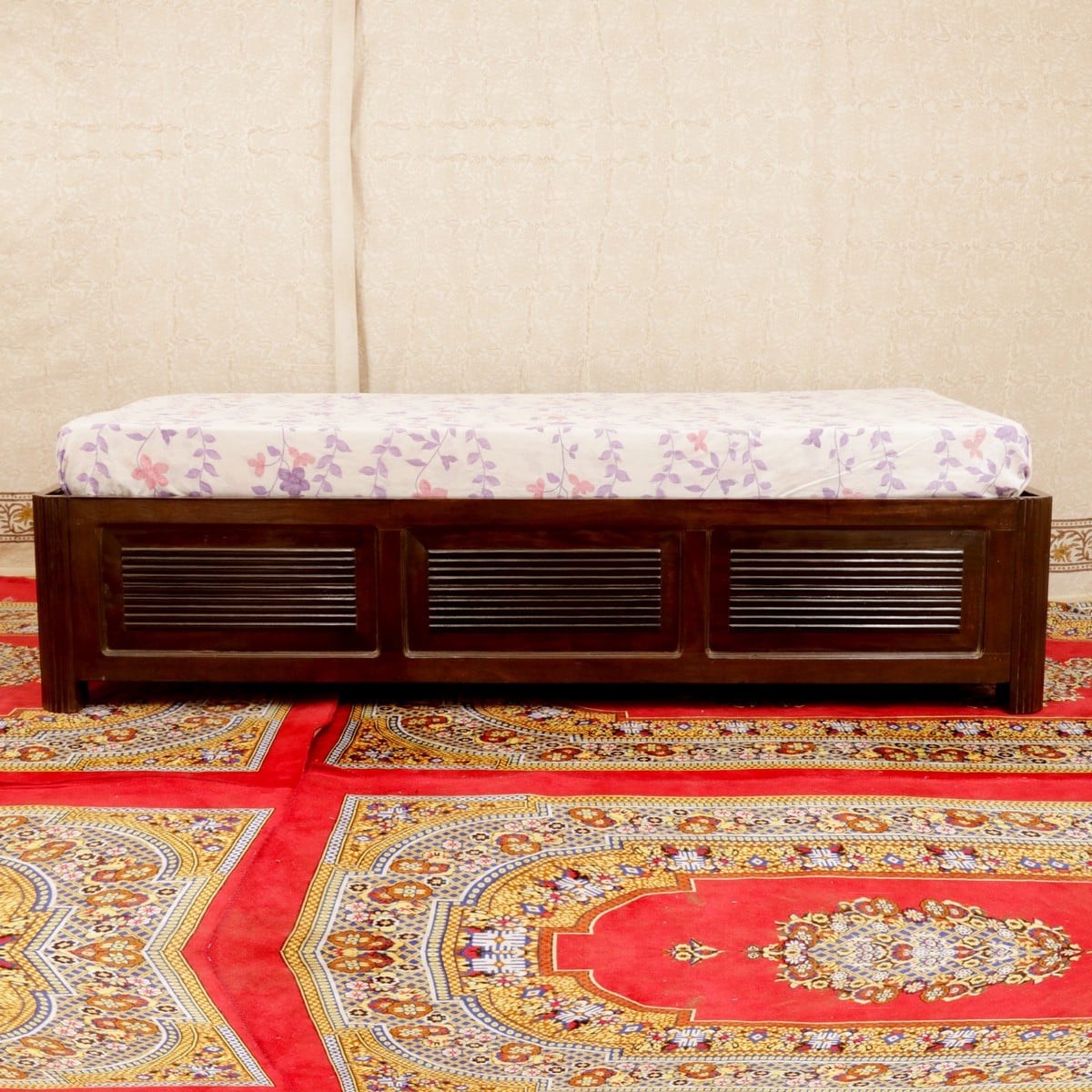 Solid Wood Dark Brown Single Bed For Bedroom (Diwan)