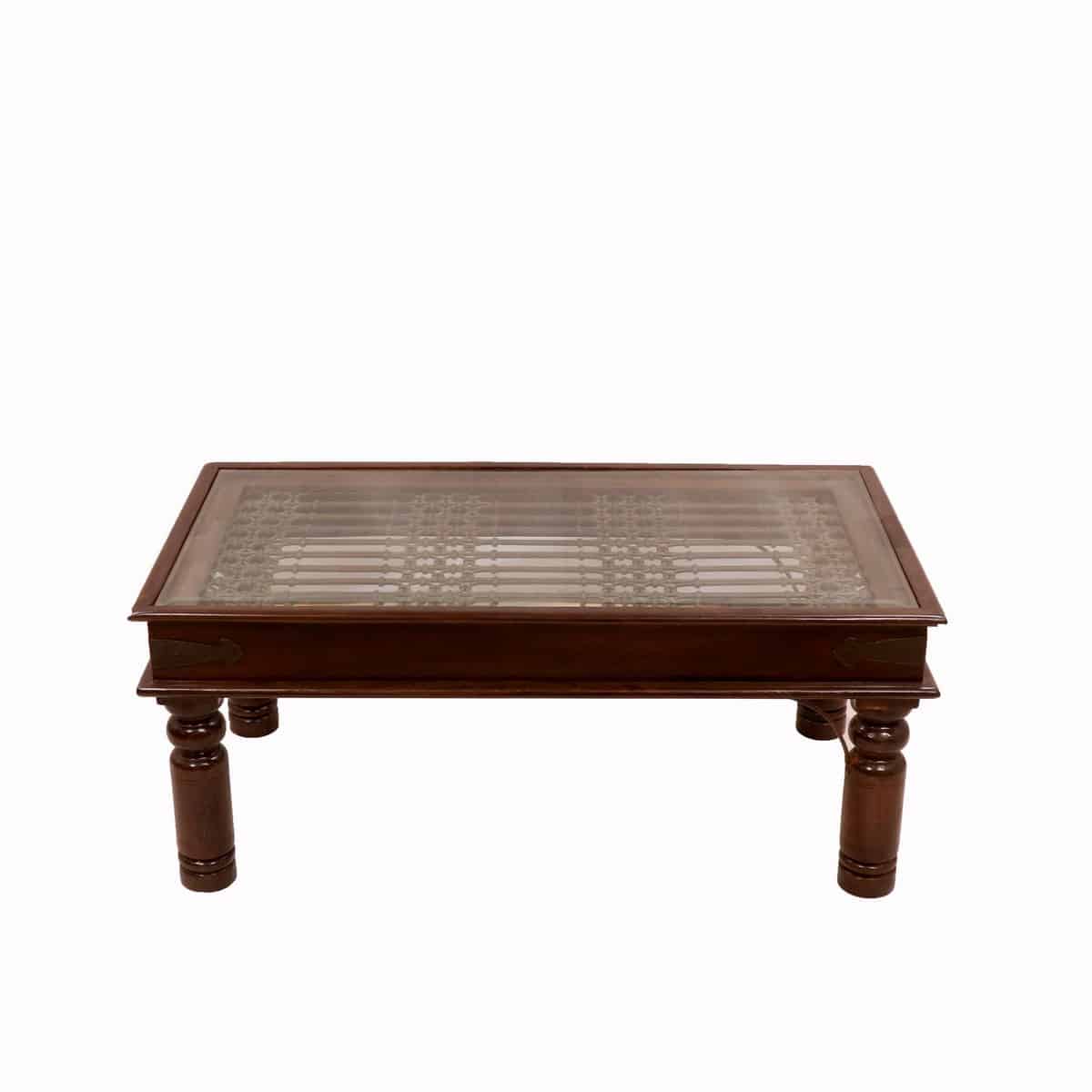 Stylish Natural Solid Wood Vintage Grill Coffee Table, The grill and the intricate carved work on metal is an ode to all things vintage, colonial, and quintessentially ethnic. If you want a look that is colonial, yet not too straight-jacketed or formal, then this is the piece that will bring you much design solace. Bring home this coffee table to add an essential grounding touch to your living room.