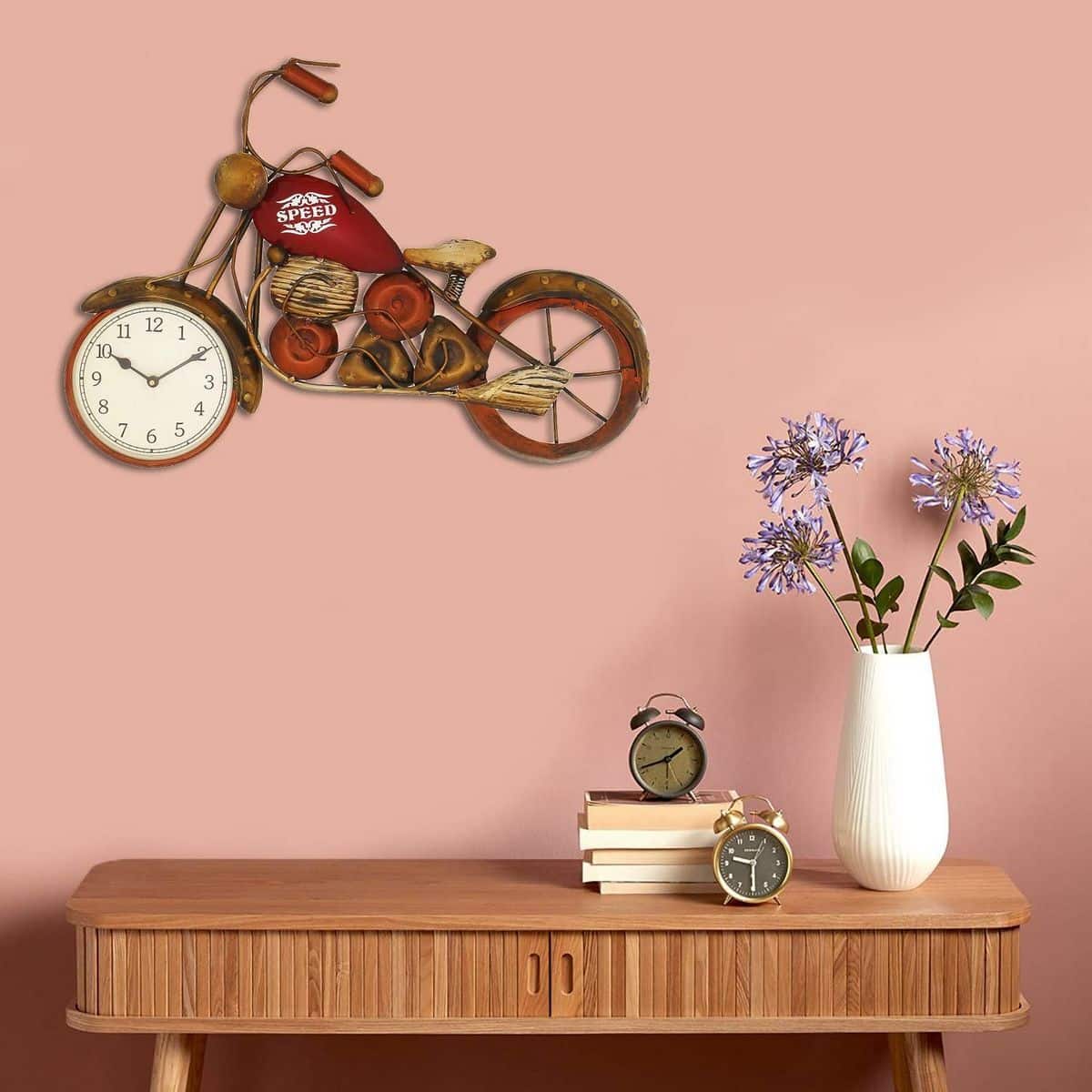 Do you need a big-size wall clock not just to stay updated with time but to decorate the wall? If yes, then you have dropped at the right place. Simply look at this amazing-looking vintage Red Bike With Timepiece wall decorative product with having round shape timepiece inside. It’s simply striking to see the front wheel of the motorcycle has a timepiece inside that allows you to stay updated with time. The overall design and incredible color combination of red and golden on the bike are sure to bring attractive elements inside the household area. You can hang this cruiser bike-shaped wall decorative item on any part of the wall and create a thematic experience inside.