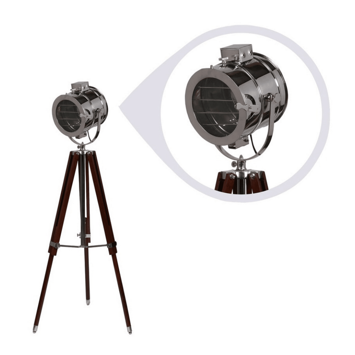 Are you fond of vintage-looking things and wish to lay hands upon several items to make your own collection? If yes, then you have dropped at the right place to buy a silver stainless steel-made standing spotlight with a wooden tripod stand for creating the right balance. A spotlight is your best collection pick to enhance the overall surroundings of the house and catch the attention of guests at a first glance.