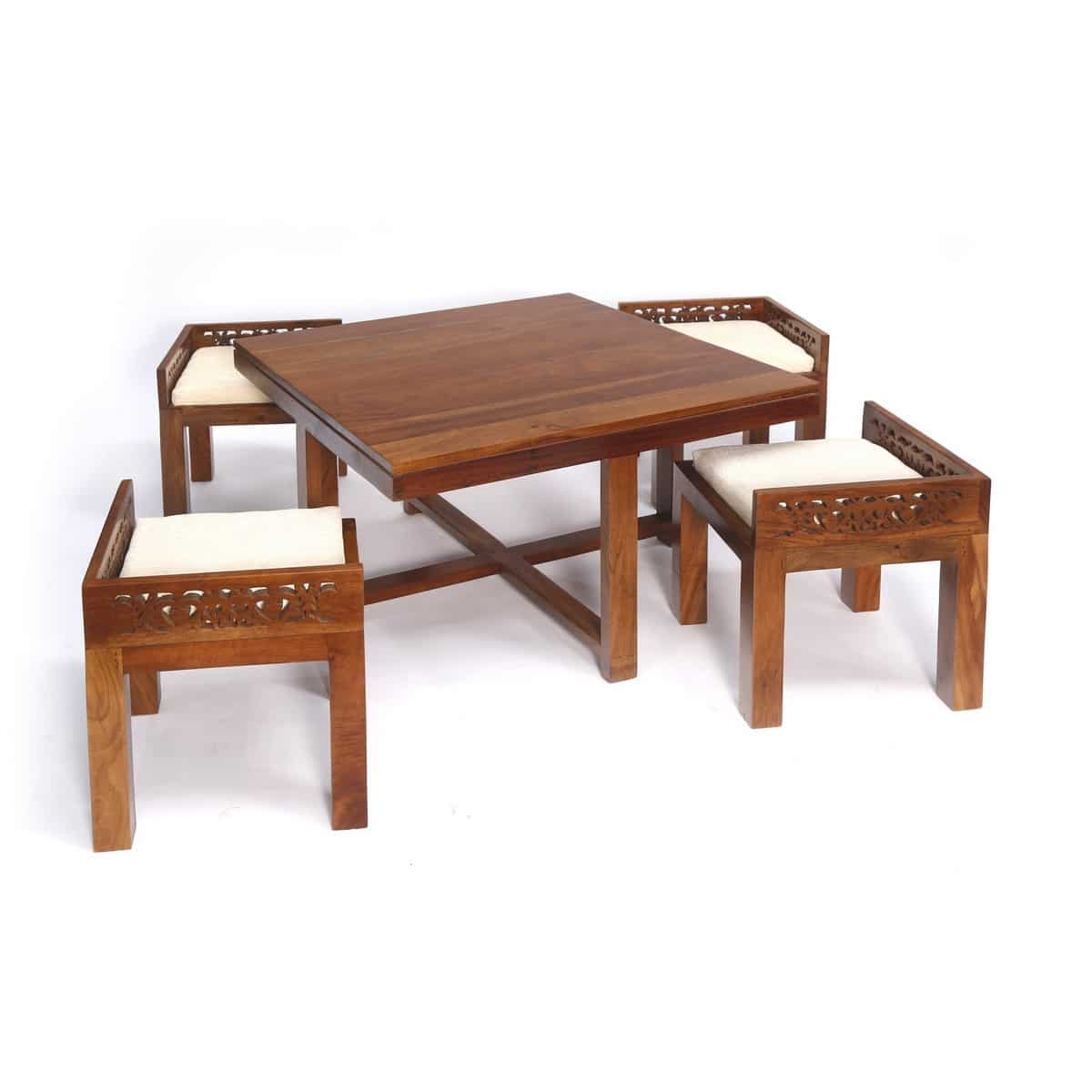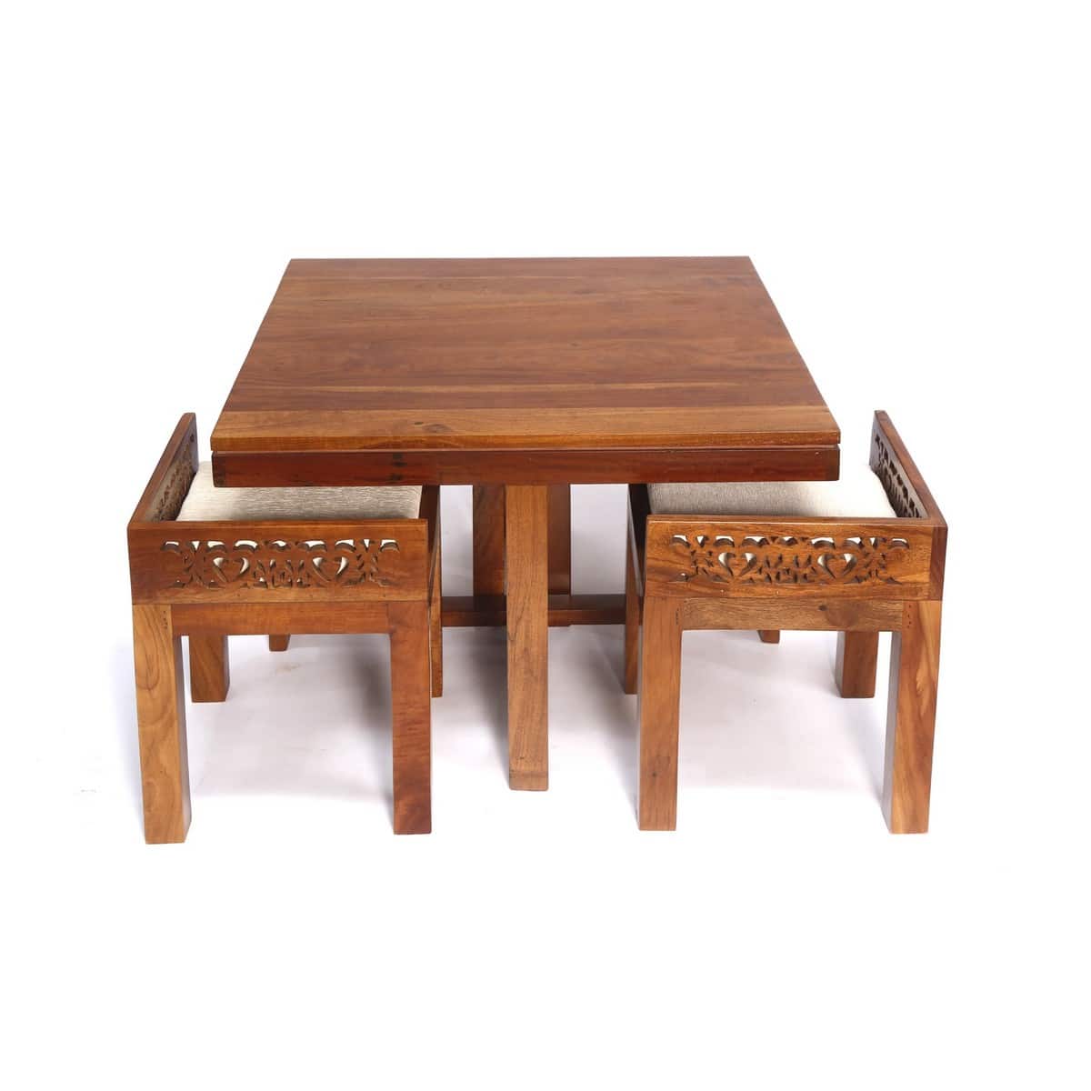 Stylish Compact Wooden Dining Set, Trends for dining sets have been steadily moving towards sleeker, miniature dining sets such as this one. Itβs because you can make effective use of your space and still provide the same value that a full-size dining set could provide. Also, if you are living in rented accommodation, you can easily pack up and take the set along to your next home.