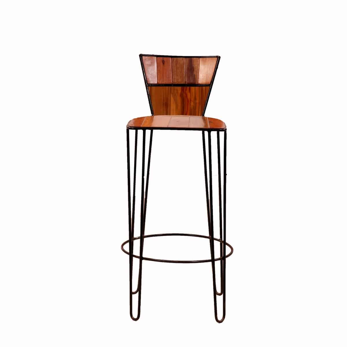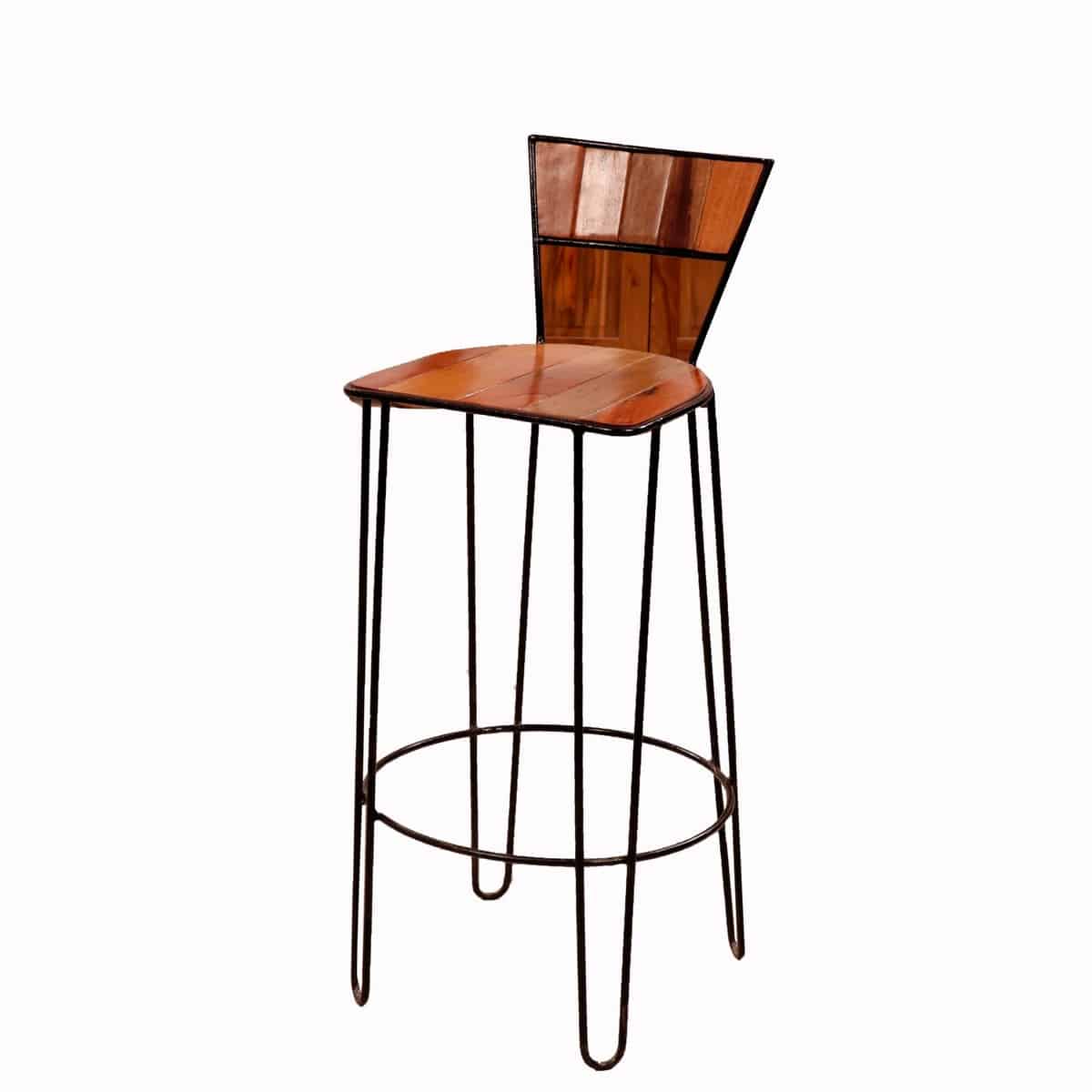 Stylish Quirky Iron Bar Chair can carry any weight thanks to the tensile strength of the wrought iron as well as the engineering of this piece. The support comes from the molded iron legs that curve in a continuous U all over the structure that also accommodates a stylish wooden back and seat.