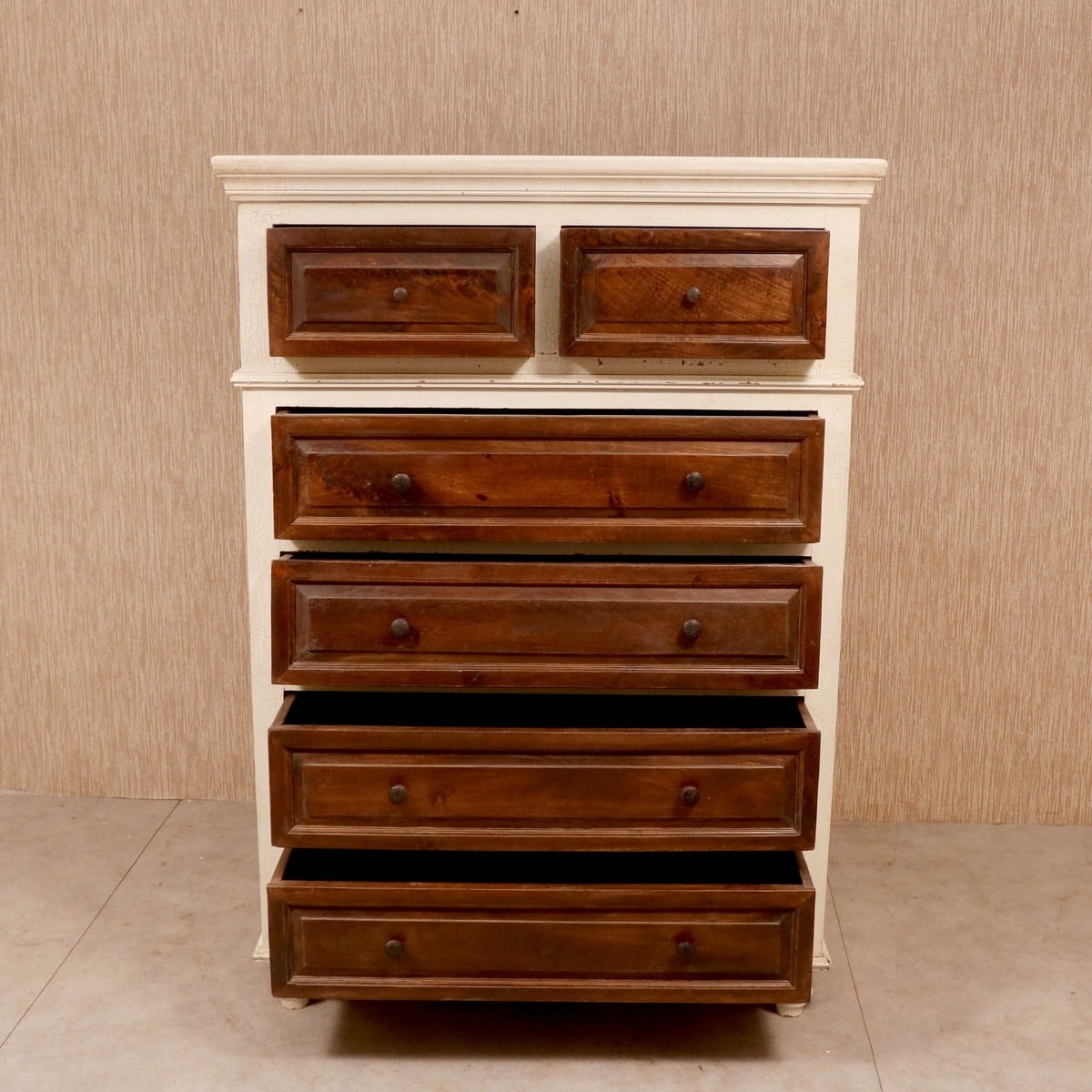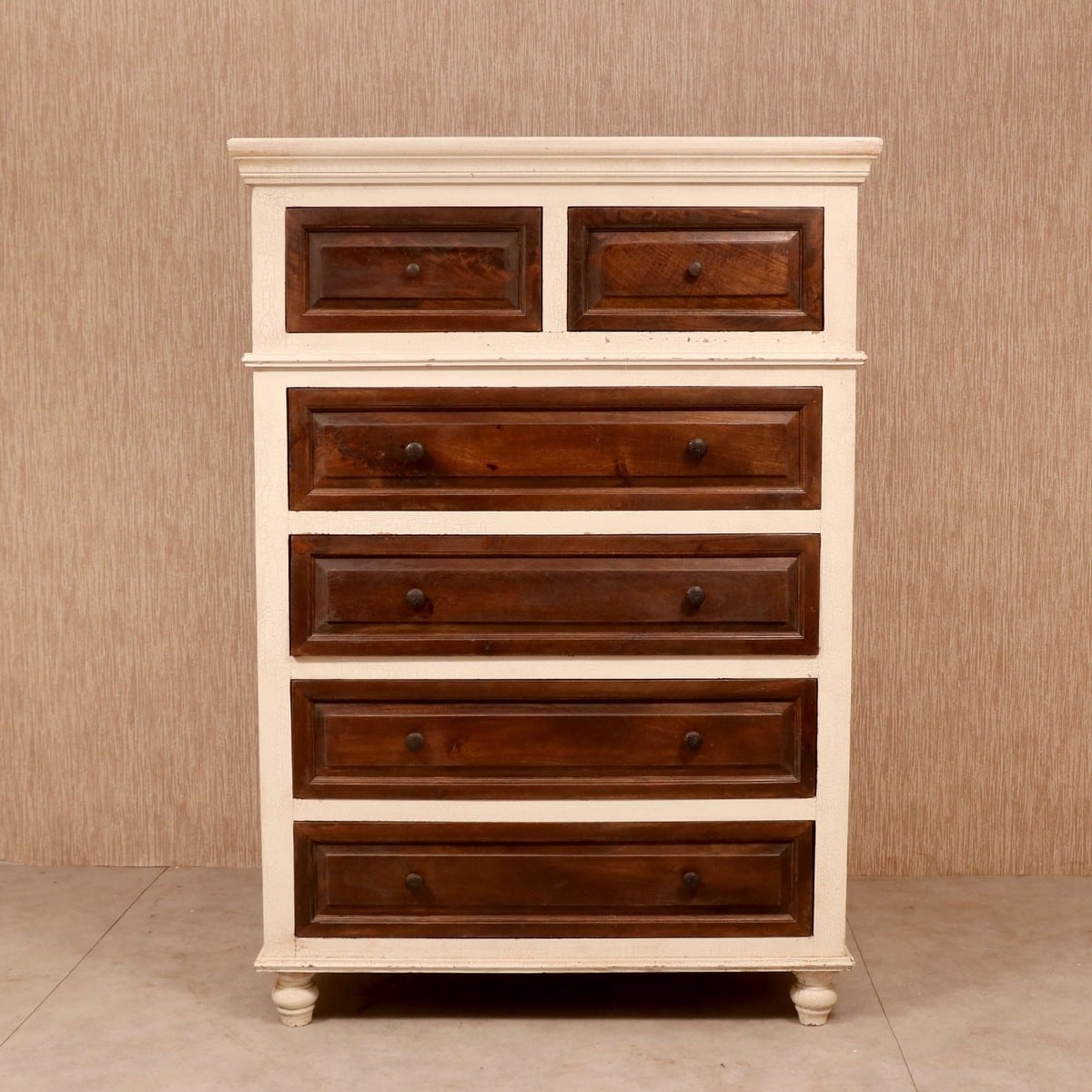 Stylish Sheesham Wood Big 2+4 Wooden Chest, If you love a good vanilla and chocolate combination then you may like this amazing chest of drawers. The dimensions are perfect, with the right amount of drawers for this staid chest. The artisans have made sure that the drawers glide in and out smoothly for ease of use. The tiny knobs on the drawers are discreet, in an effort to blend in with the well-thought design. This magnificent piece is just the thing for the children’s room, for storing their clothes, shoes, school supplies and toys. It will work just as well in the master bedroom. The top is ideal for potted plants or some photo frames.
