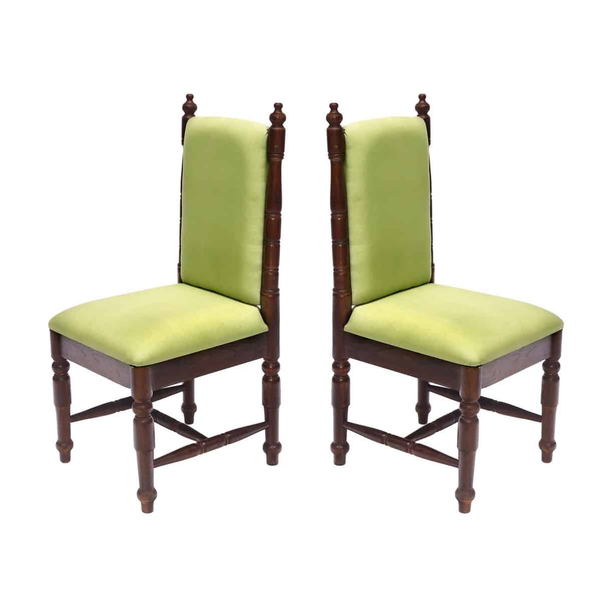 Stylish Spiral Long Back Chair (Set of 2), To have great posture, you need to sit upright in the right kind of chair. With many people working from home, this has been a major problem. An inappropriate seating situation could leave you with a backache as well as a bad posture. To avoid such situations, you should invest in a chair that provides you the right kind of support. This chair could be the ideal choice for you. It has a long back so you can sit back and relax. The green fabric on the chair will enliven the space. So, grab one of these chairs right away.