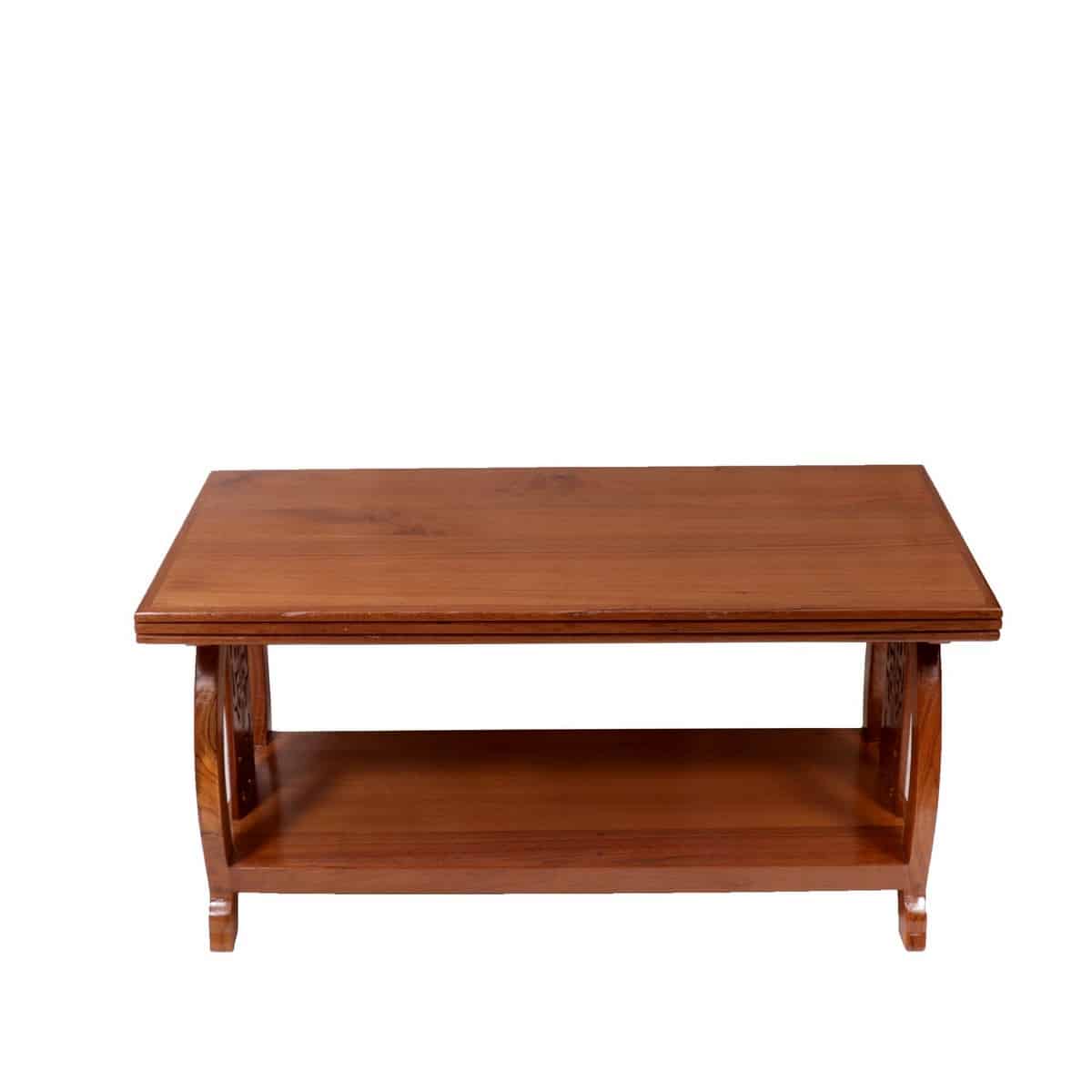 Stylish Teak Wood Solid Sofa Cum Coffee Table, This rectangular coffee table has a carved piece at either end with an open front. The cherry-hued wooden polish would lend a rich look to its surroundings. The table can be added as a coffee table in your living room to create a look that says luxurious with a capital L. The luxurious-looking piece can be matched with upholstered furniture. The rich wooden polish would be perfect with floral upholstery as this would help bring out the hues of the flowers in the print. You can add accents in tones like saffron, rust, maroon, and others so that you have a palette that spells class! You can also use this coffee table between two chairs in your bedroom.
