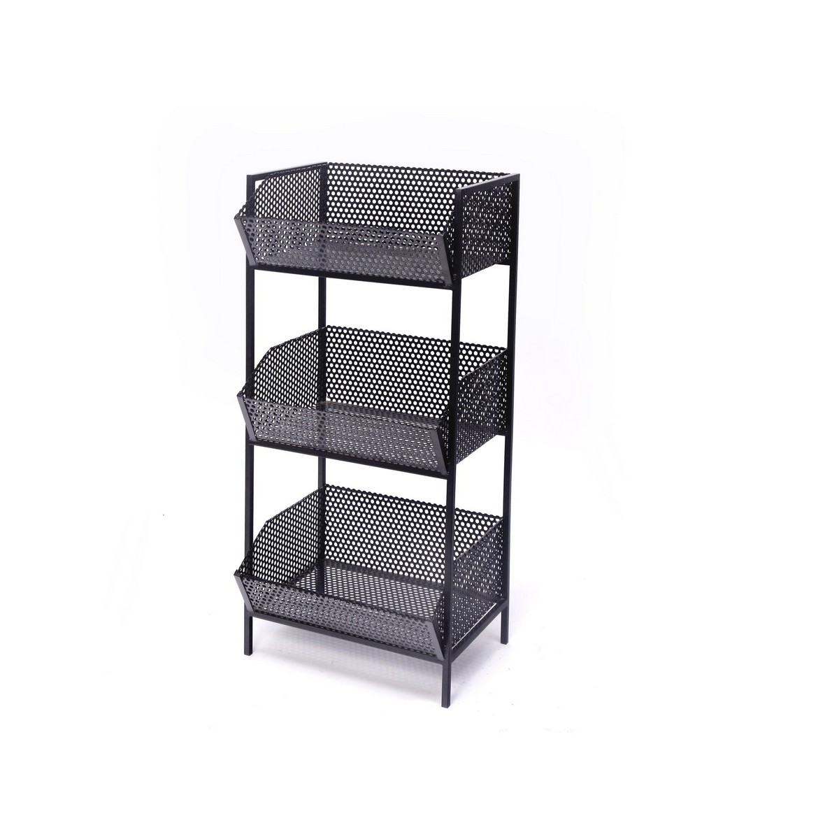 Stylish Three Basket Fruit Rack For Kitchen, This is a simple fruit rack that is a convenient utility item for any home. It features three baskets in a simple metal frame and can be used for storing fruits or vegetables in your kitchen or dining room. Besides, it is a multi-purpose utility item that can be put to a variety of other uses as well.