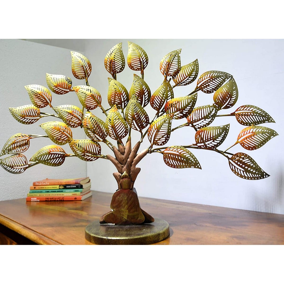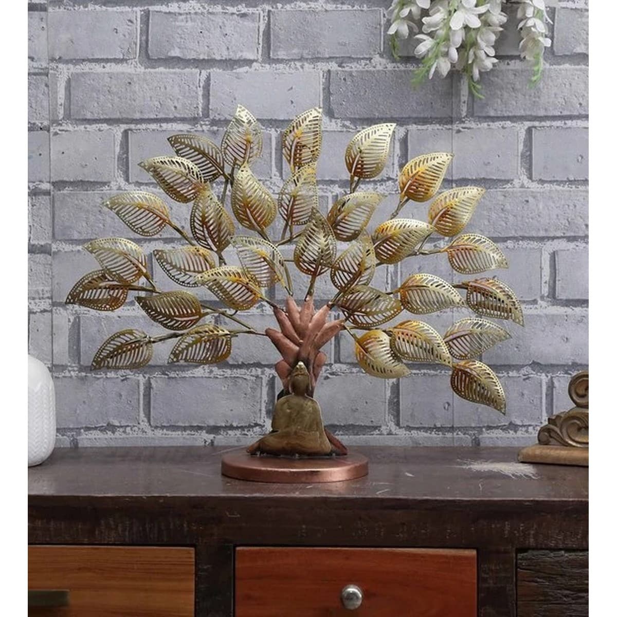 Finding something attractive looking and decent in size for the tabletop decoration? If yes, then you have dropped at the right place. Find this amazing and glowing artificial-looking Buddha Table Top tree behind for all decoration that features brown and dark shaded leaves along with brown bottom.