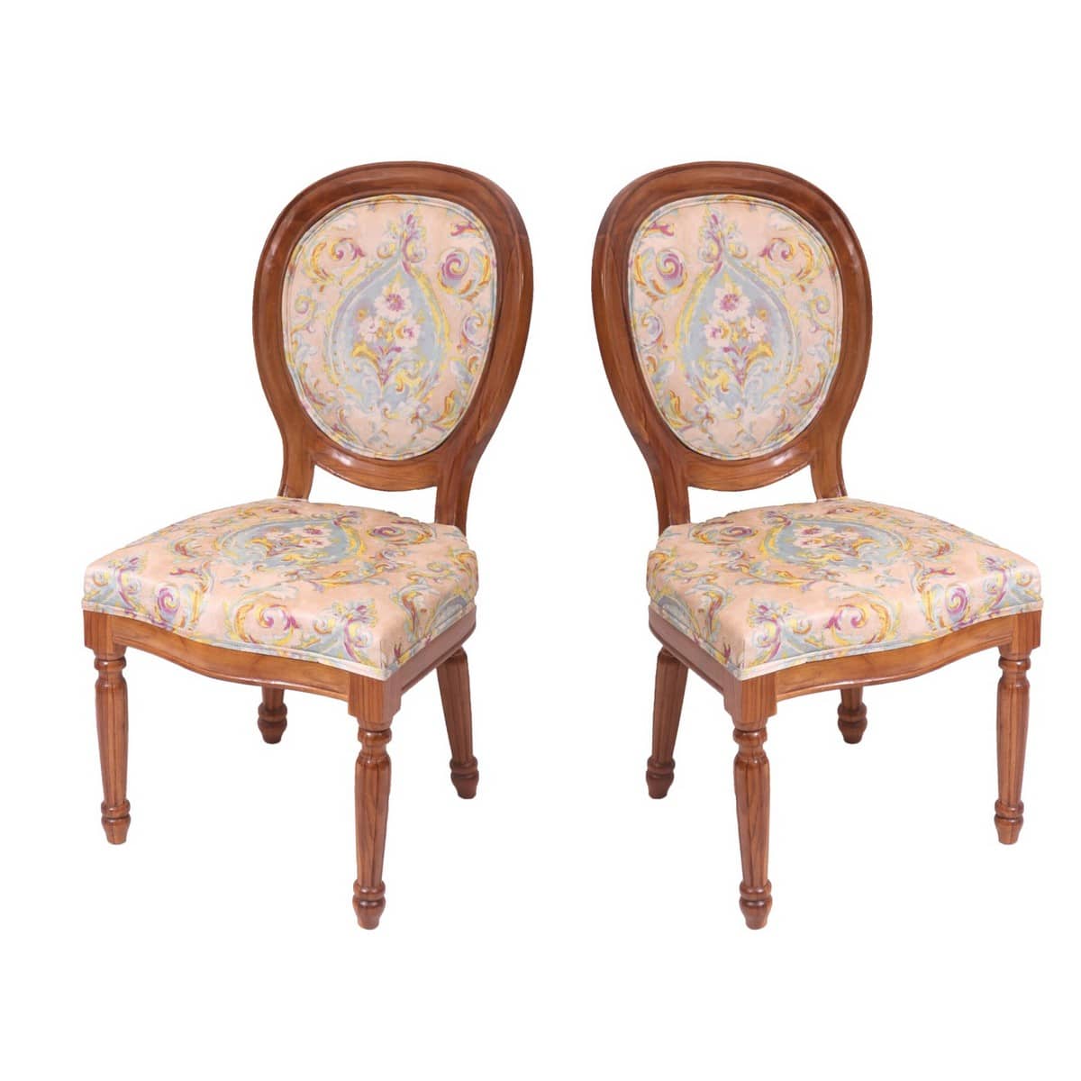Teak Floral Delight Dining Chair (Set of 2), The rounded back and the floral touch make this a comfortable chair to dining in. The solid wooden chair, with soft pastel hues on the floral upholstery, would fit in perfectly in both formal and informal spaces. You can pair this chair with a glass top, and a round table, which will give your space an airy yet formal look. You can place a few indoor palms and watch the space come alive. It will be like a breath of fresh air every morning.