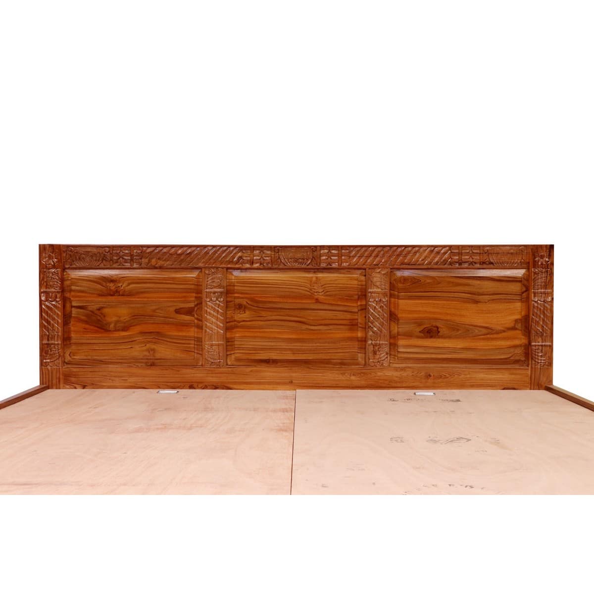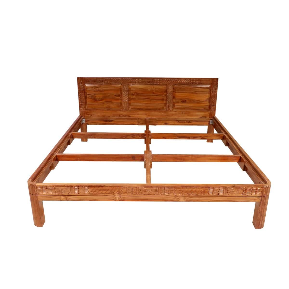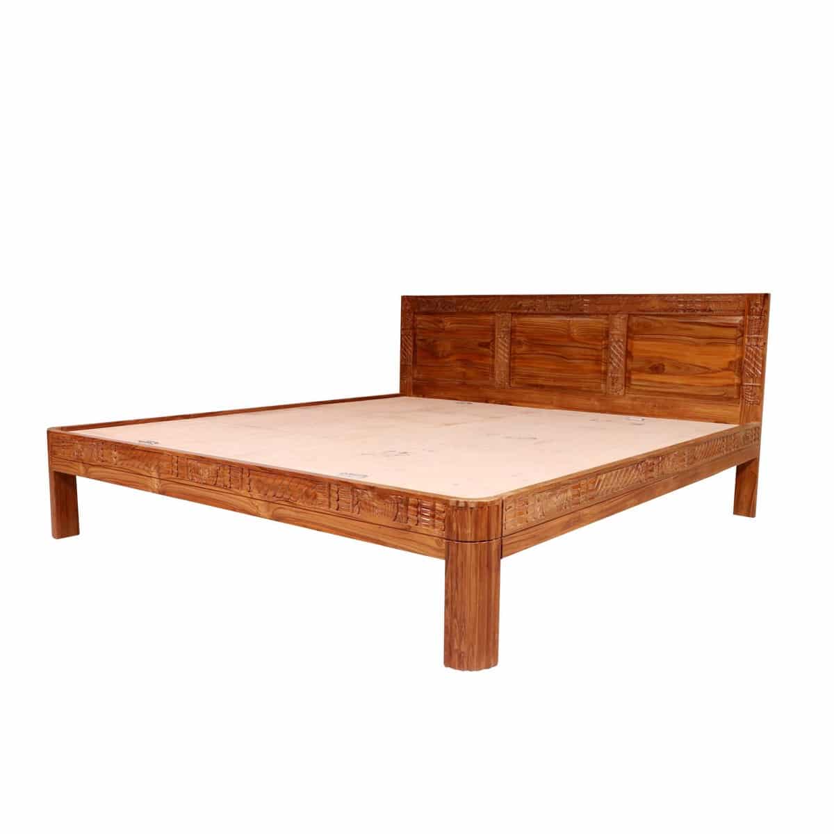 Teak Wood Carved Folk Concept Compact Bed