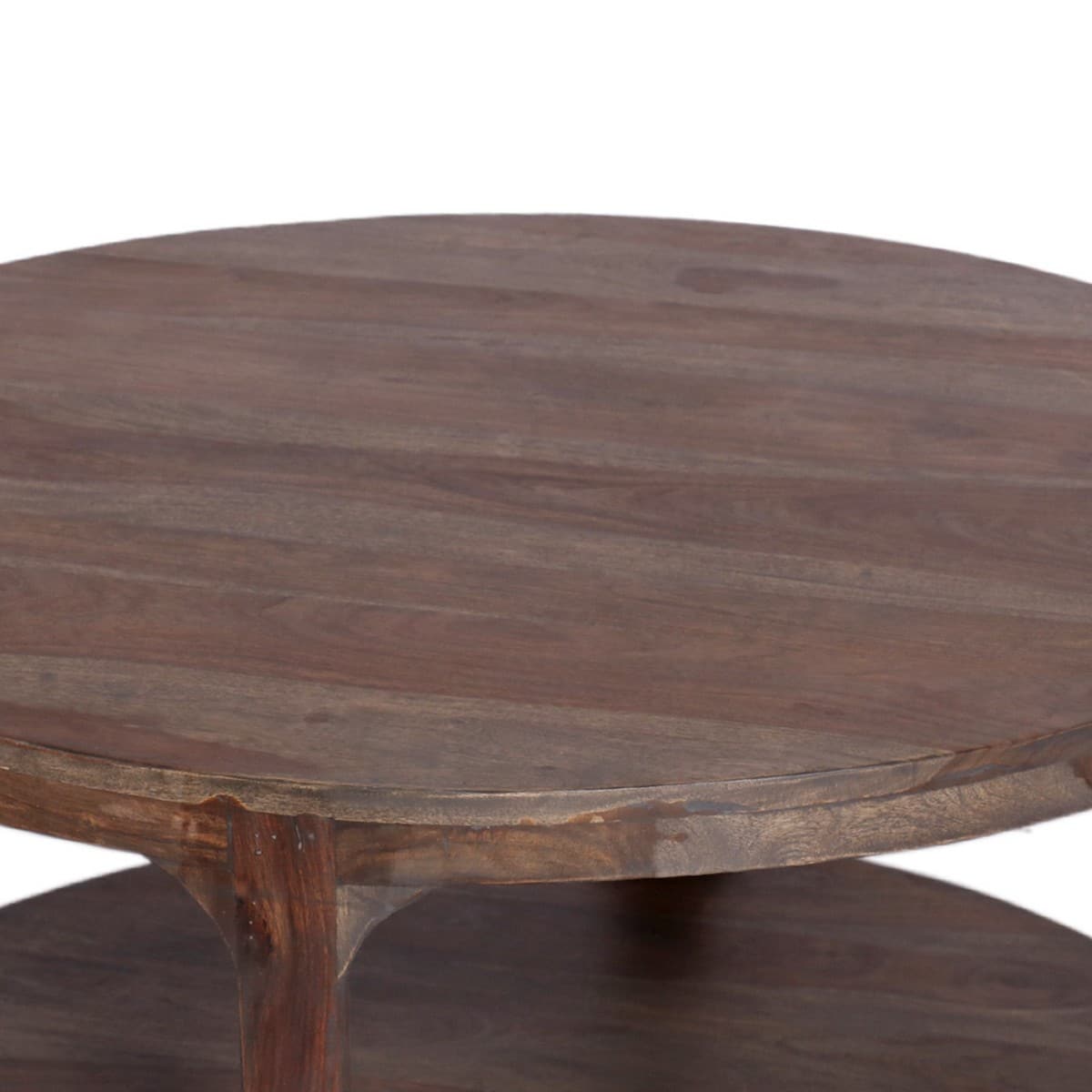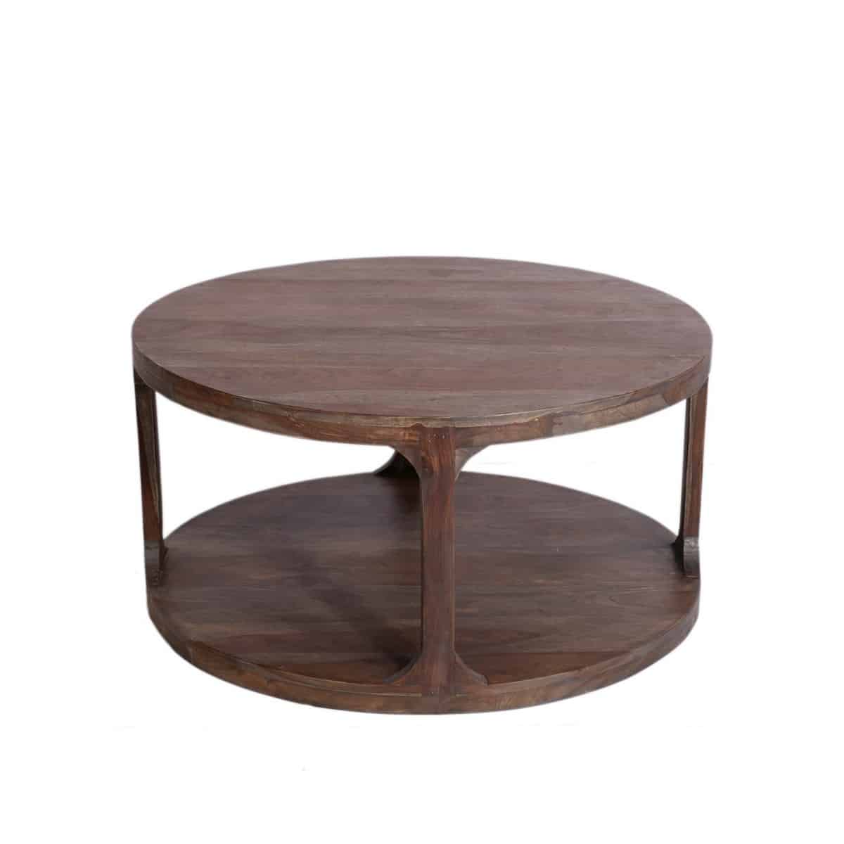New Design Teak Wood Dark Brown Solid Coffee Table, With the two discs of richly polished wood and the simple legs joining them, you cannot go wrong with this table. This table and its dark polish are just a few shades shy of black. The dark brown polish makes this a rich addition to any and every space while the circle design is a unique one for coffee tables.