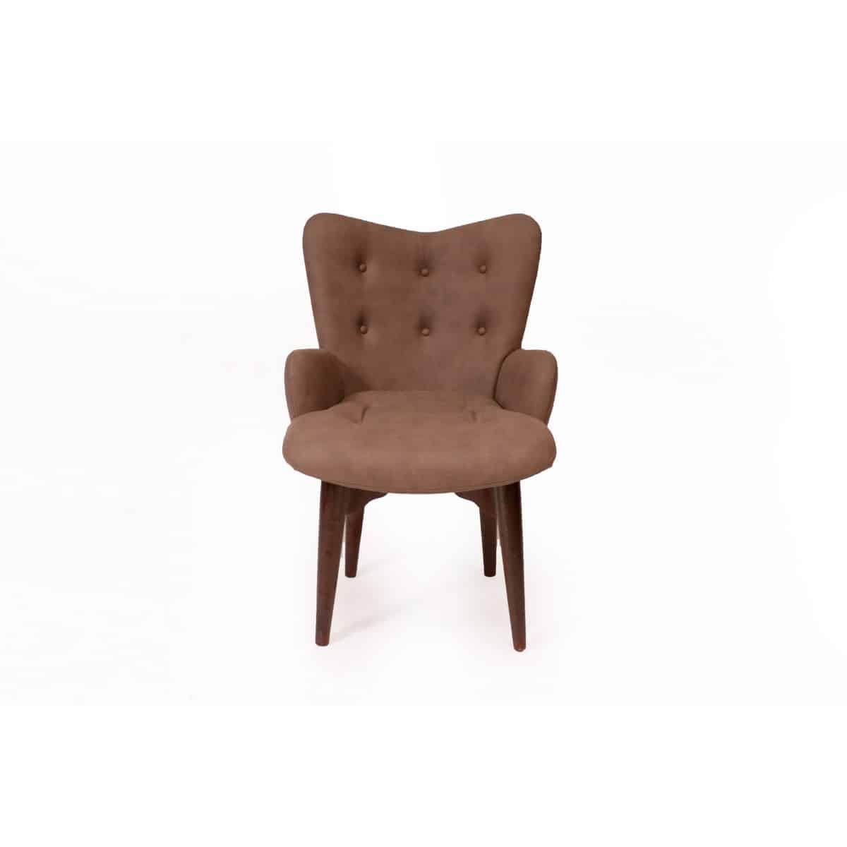 Upholstered Contemporary Chair, This contemporary upholstered chair is classic comfort furniture. What makes this chair different from any other is its unique design with a large backrest, seating, and two hand rests, all covered in comfortable cushioning for ultimate comfort. The matted dusty tone of the cushion is a perfect complement to the glossy dark brown polish of the legs.