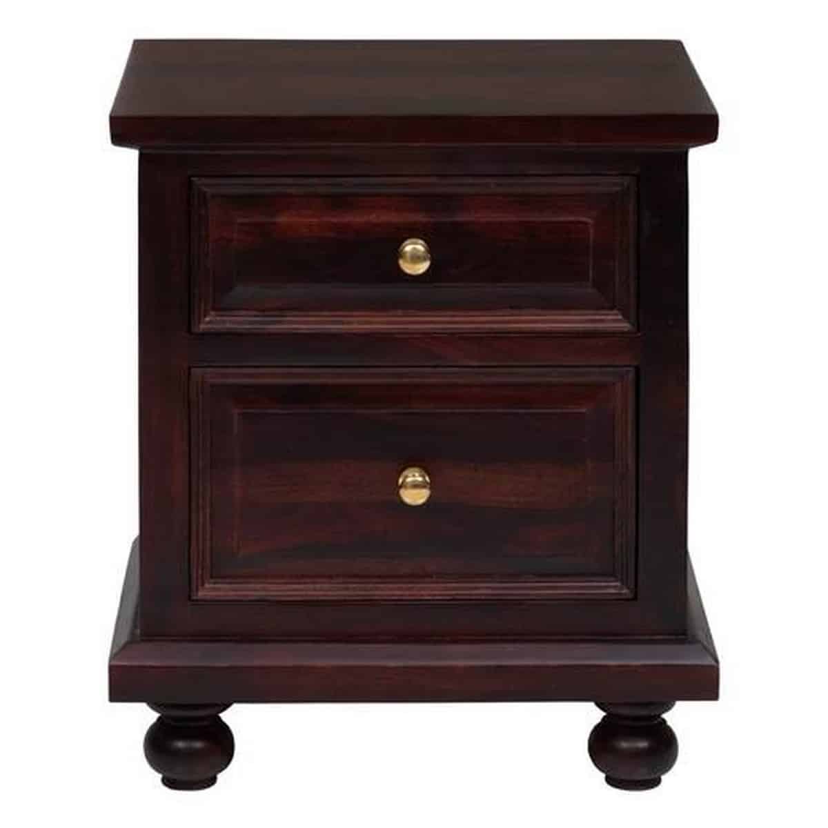 Wonderful Solid Wood Bedside Table of Dark Walnut Color
