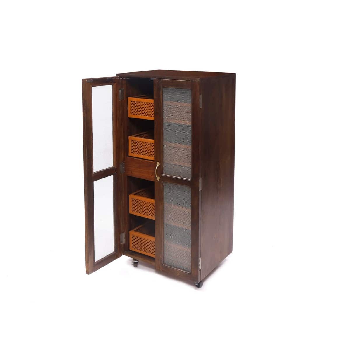 Wooden Frame Iron Jali Fruit & Vegetable Basket Cupboard