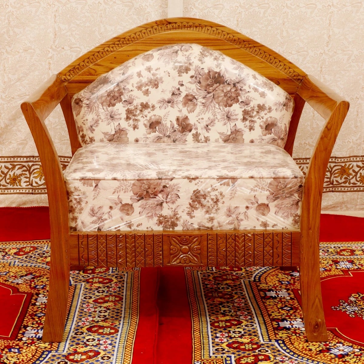 Wooden Traditional Simple Teak Wood Single Seater Sofa, Delicate and oh-so-pretty – thatβs the first impression you will make with this sofa set crafted from sturdy teak wood! The carving on the bottom planks perfectly complements the simple arch that sits on the back, giving the couches much style and panache. The low-style seating of the couches also makes it perfect for an urban setting and you can easily place some cabinetry on both sides to hold your artifacts and a cool run underneath to contrast the subtle colors and floral pattern of the upholstery. This sofa set would pretty much complete your living room and offer plenty of seating for family and friends. A bench or a few floor cushions can complete the look perfectly!