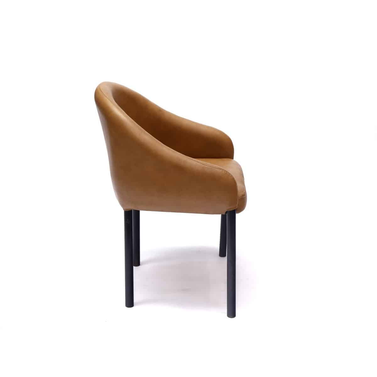 Yellow Synthetic Regajin Metal Chair, The curve of this chair is a classic one with a modern rendition that makes do with a single curve going from arm to arm and rising only at the back. This is a take on the classic curved upholstered chair. This way, you can have a simple and uncluttered vibe in your space without a cumbersome and layered design that could easily overpower all else.