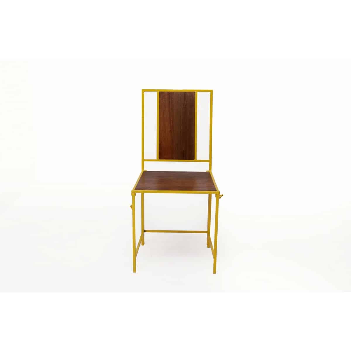 Yellow Wooden Metallic Dining Folding Chair (Set of 2)